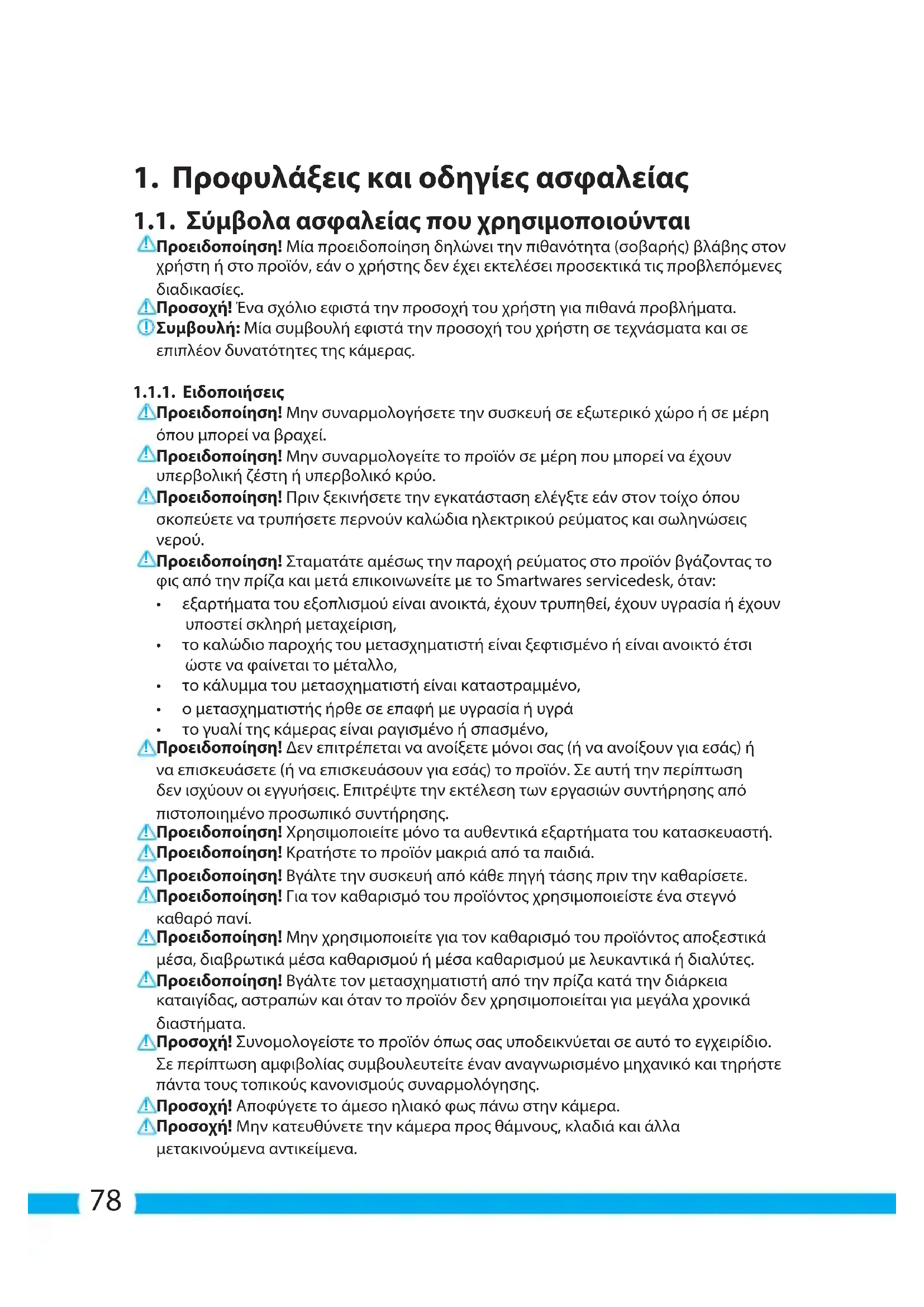 Προειδοποίηση! Σταματάτε αμέσως την παροχή ρεύματος στο προϊόν βγάζοντας το φις από την πρίζα και μετά επικοινωνείτε με το Smartwares servicedesk, όταν: