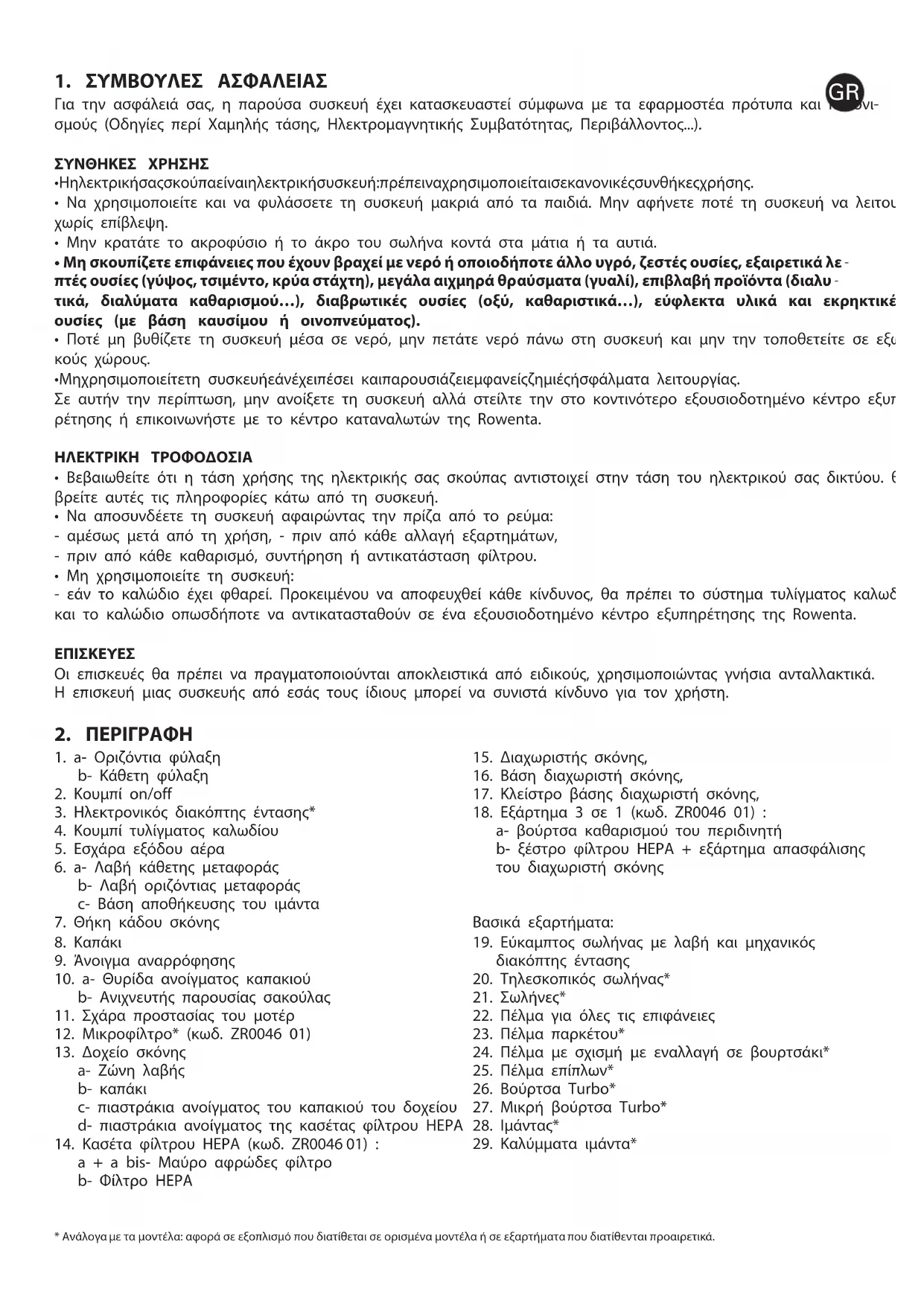 - Διαβάστε προσεκτικά τις οδηγίες χρήσης πριν χρησιμοποιήσετε για πρώτη φορά τη συσκευή σας: η Rowenta δεν φέρει καμία ευθύνη σε περίπτωση μη τήρησης των οδηγιών αυτών.