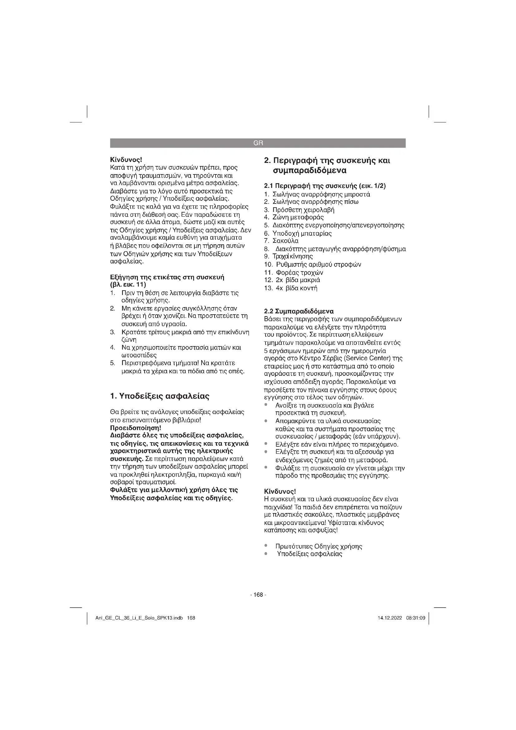 τραυματισμούς παντός είδους ευθύνεται ο χρήσητς/χειριστής και όχι ο κατασκευαστής. Παρακαλούμε να προσέξετε πως οι συσκευές μας δεν προορίζονται και δεν έχουν κατασκευαστεί για επαγγελματική, βιοτεχνική ή βιομηχανική χρήση. Δεν αναλαμβάνουμε εγγύηση σε περίπτωση κατά την οποία η συσκευή χρησιμοποιήθηκε σε συνεργεία, βιοτεχνίες ή στη βιομηχανία ή σε εργασίες παρόμοιες με αυτές.