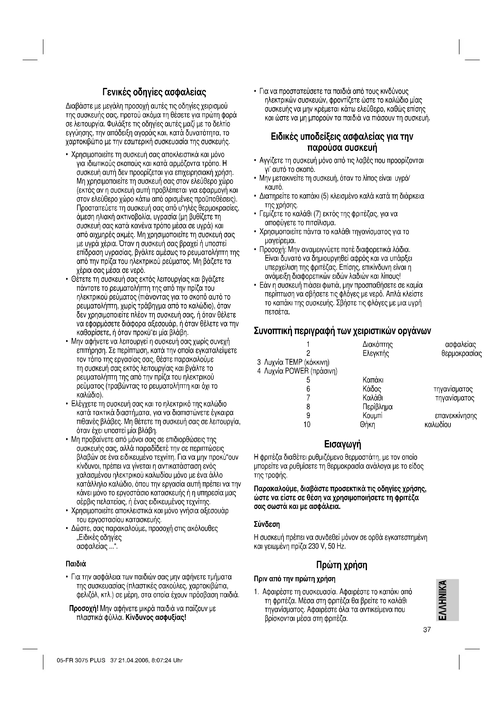- Αλλάξτε το φίλτρο. 05-FR 3075 PLUS 38 21.04.2006, 8:07:28 UhrΕΛΛΗΝΙΚΆ