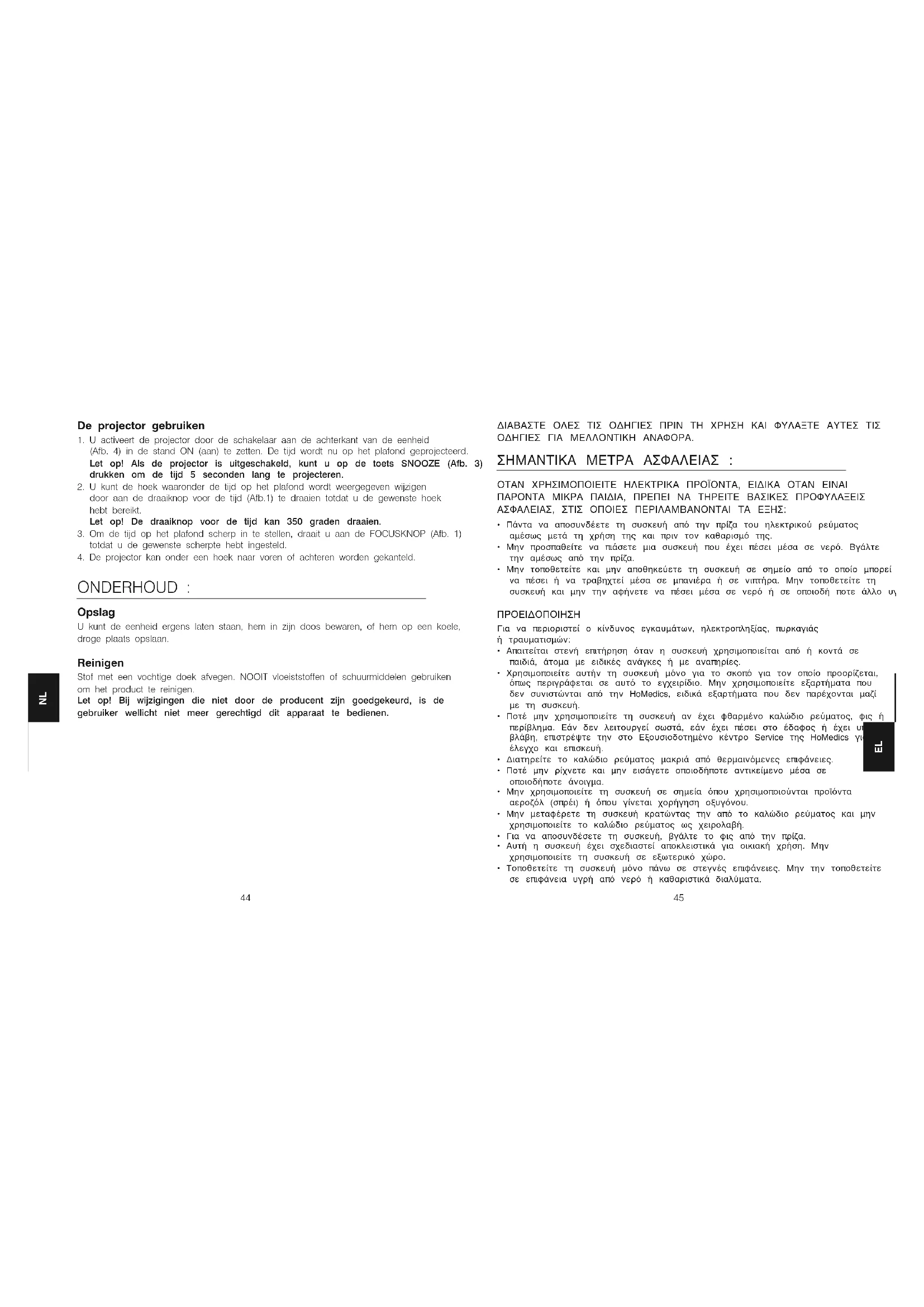 - Εάν ο μετασχηματιστής έχει βλάβη, διακόψτε αμέσως τη χρήση της συσκευής και επικοινωνήστε με το Εξουσιοδοτημένο κέντρο Service της HoMedics. ΟΔΗΓΙΕΣ ΧΡΗΣΗΣ :