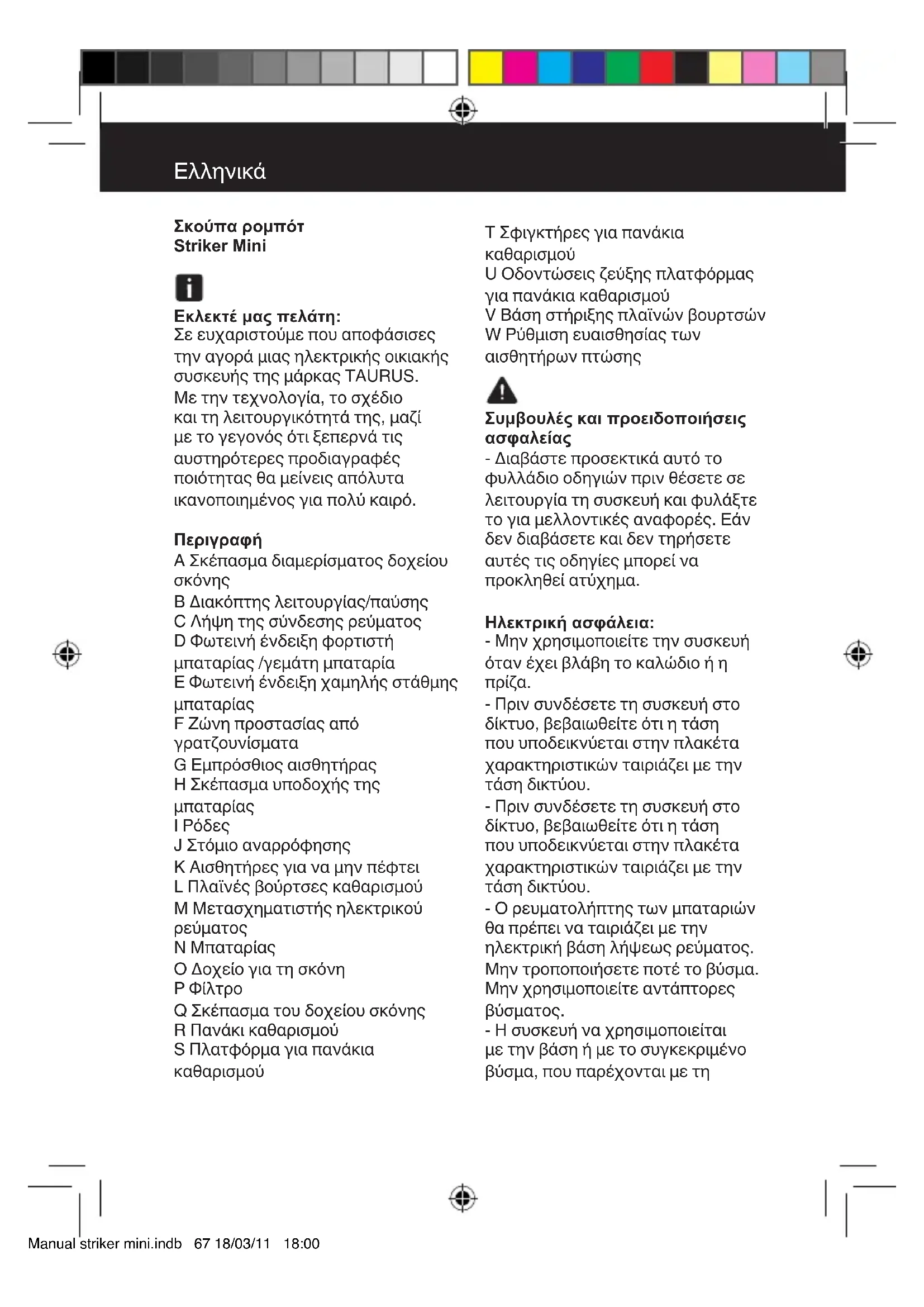 ΕΓΧΕΙΡΊΔΙΟ ΧΡΉΣΗΣ Robot Striker Mini TAURUS