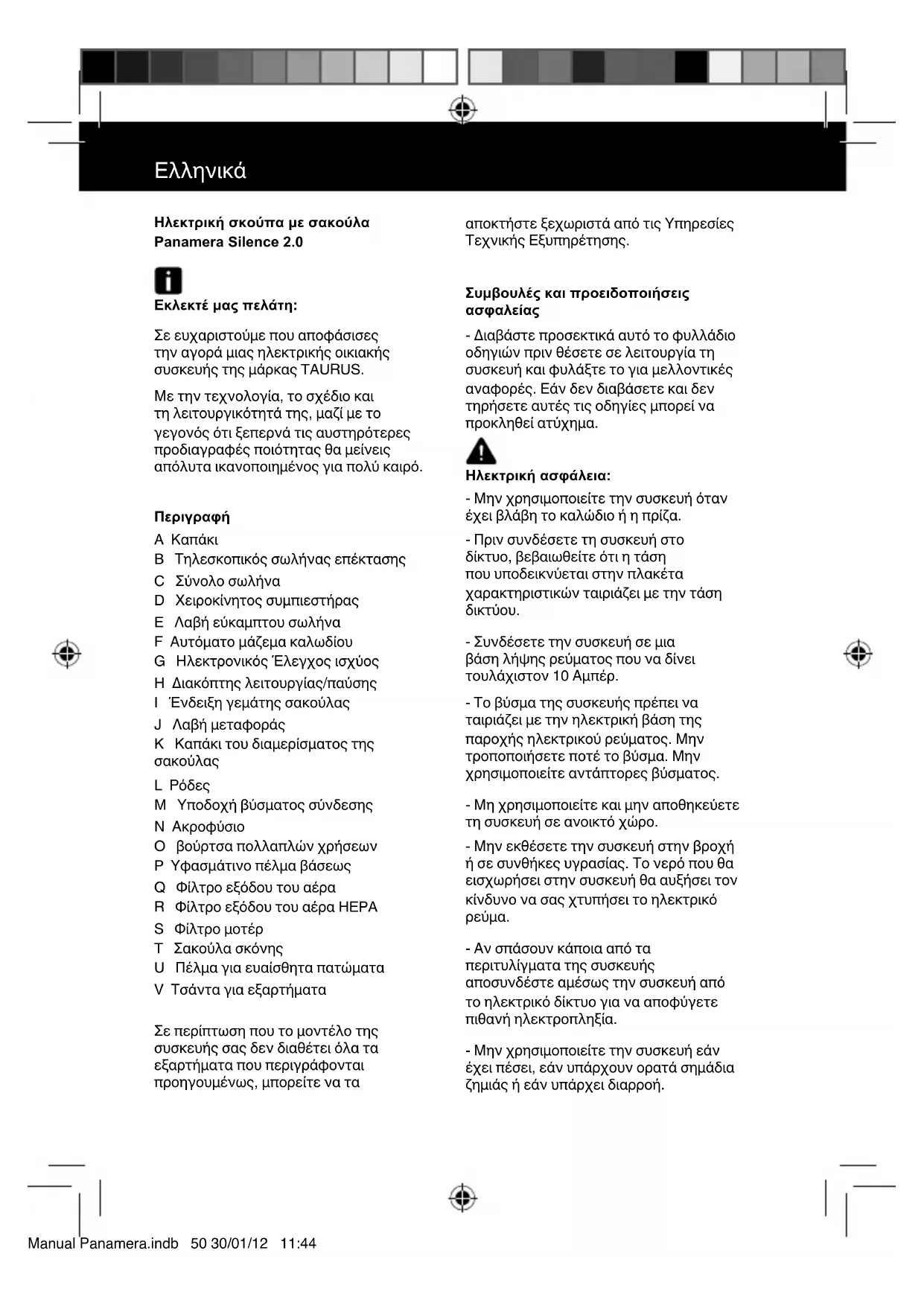 Panamera Silence 2.0 - Ηλεκτρική σκούπα TAURUS - Δωρεάν εγχειρίδιο χρήσης