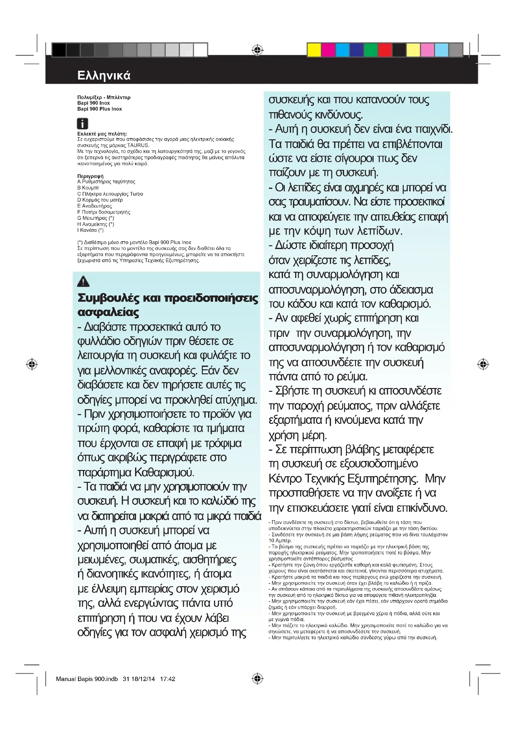 Bapi 900 Inox - Μίκτης TAURUS - Δωρεάν εγχειρίδιο χρήσης