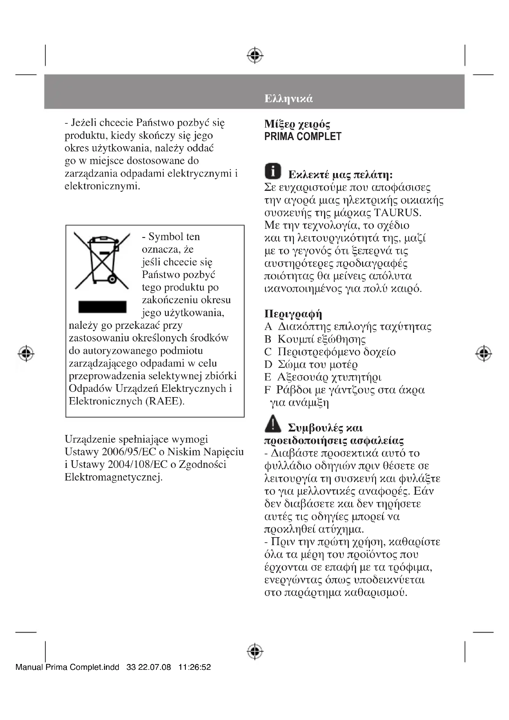 ΕΓΧΕΙΡΊΔΙΟ ΧΡΉΣΗΣ Prima Complet TAURUS