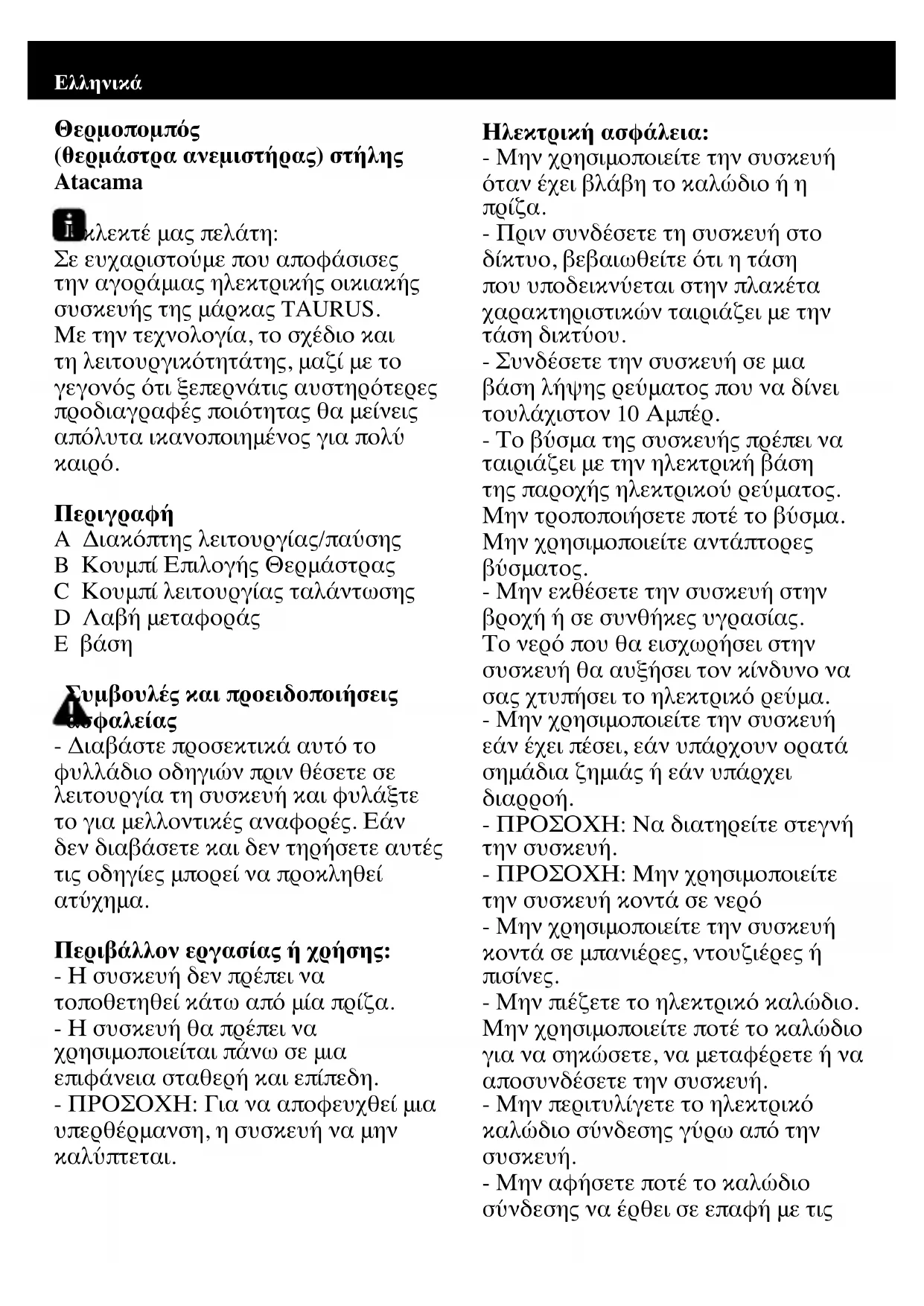 Atacama - ανεμιστήρας TAURUS - Δωρεάν εγχειρίδιο χρήσης