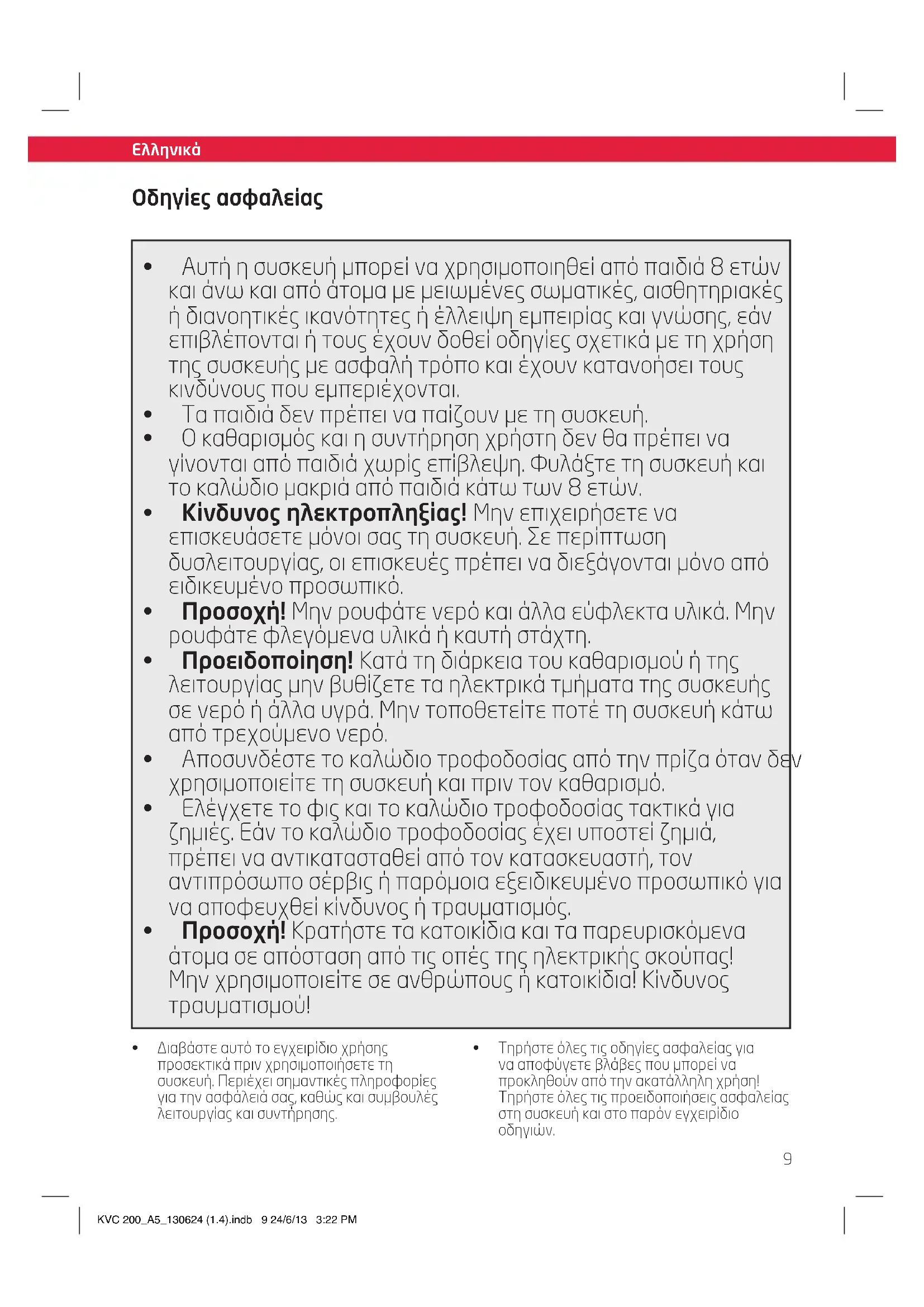 KVC 200_A5_130624 (1.4).indb 9 24/6/13 3:22 PM10 Ελληνικά Ελληνικά Οδηγίες ασφαλείας