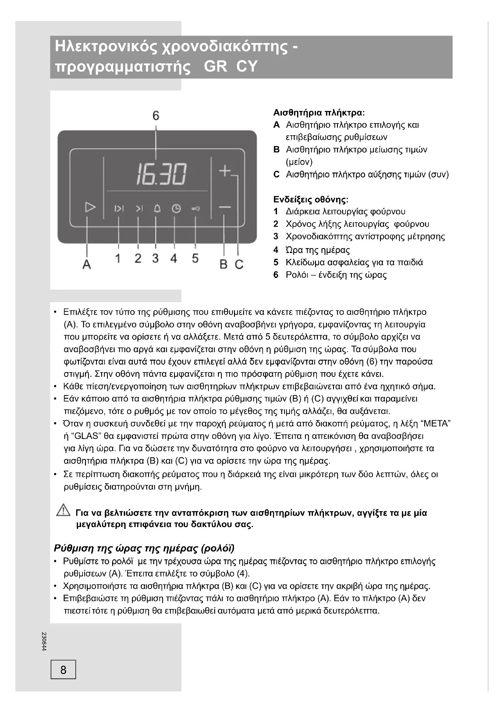 Ηλεκτρονικός χρονοδιακόπτης - προγραμματιστής GR CY230844 Ο χρονοδιακόπτης - προγραμματιστής μπορεί να χρησιμοποιηθεί για να προγραμματίσει τον φούρνο με τρεις τρόπους: