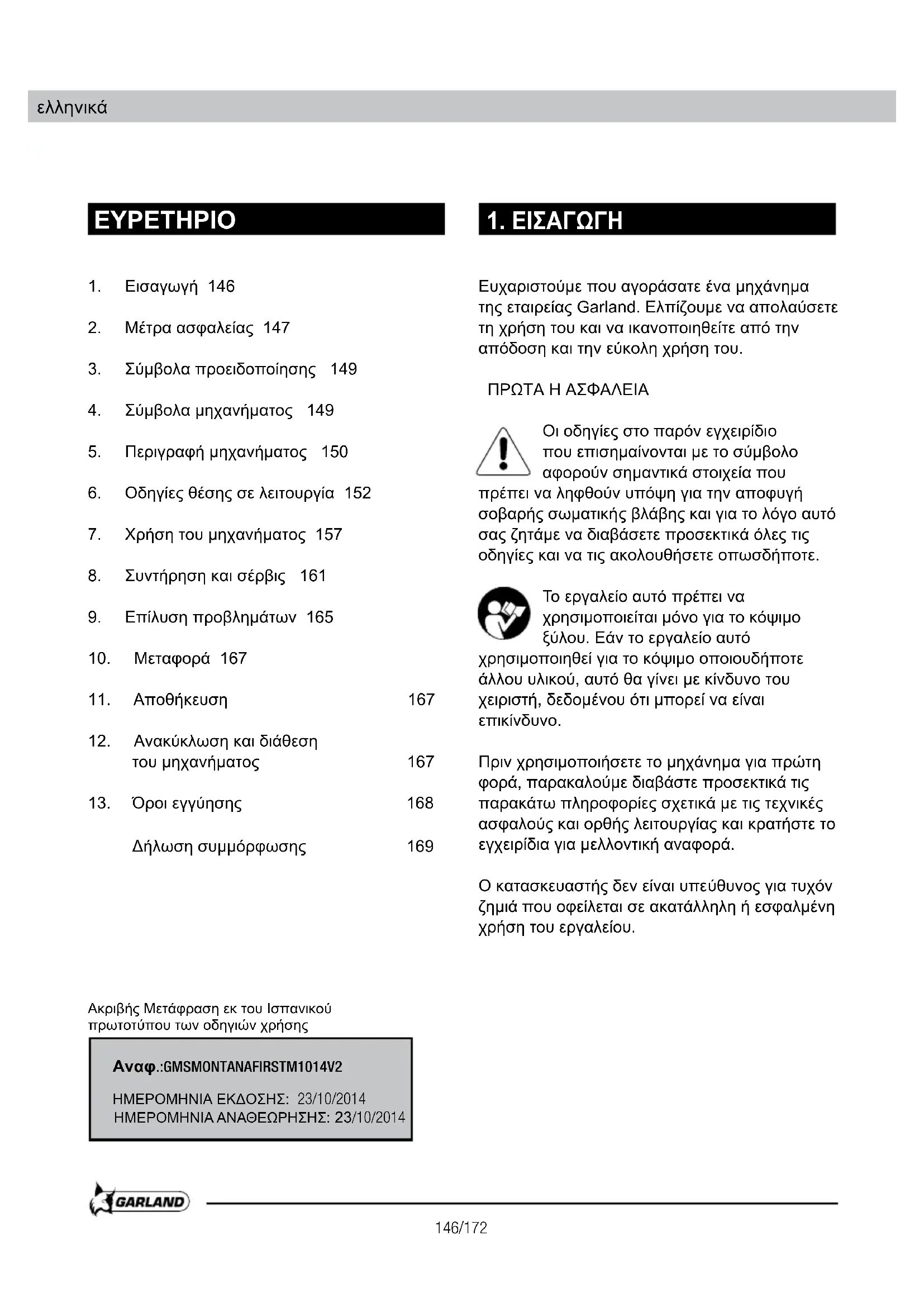 Κατεβάστε τις οδηγίες για το Πριόνι σε μορφή PDF δωρεάν! Βρείτε το εγχειρίδιό σας Montana First - GARLAND και πάρτε ξανά την ηλεκτρονική σας συσκευή στα χέρια σας. Σε αυτή τη σελίδα δημοσιεύονται όλα τα έγγραφα που απαιτούνται για τη χρήση της συσκευής σας. Montana First της μάρκας GARLAND.
