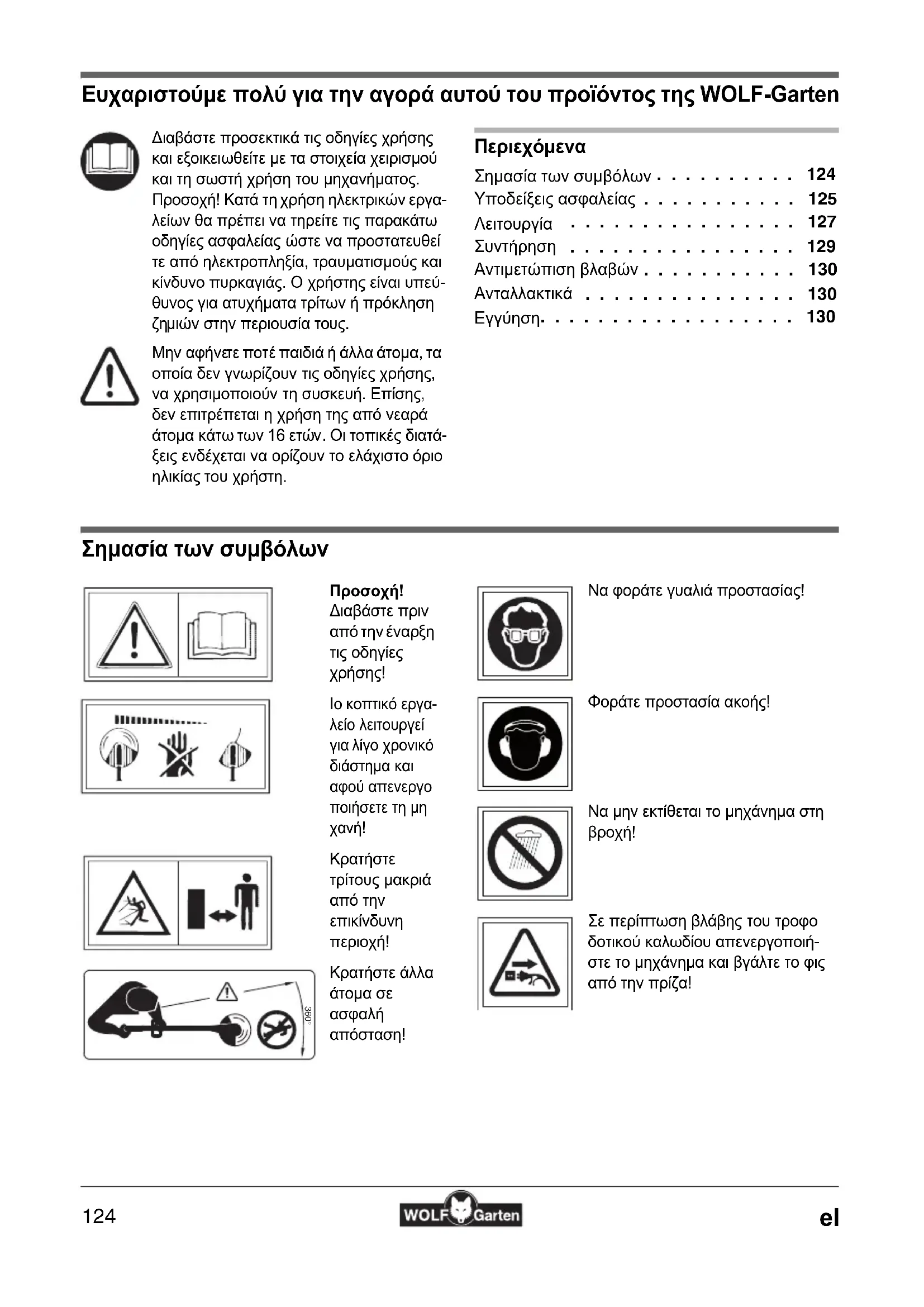 Ευχαριστούμε πολύ για την αγορά αυτού του προϊόντος της WOLF-Garten Περιεχόμενα Σημασία των συμβόλων