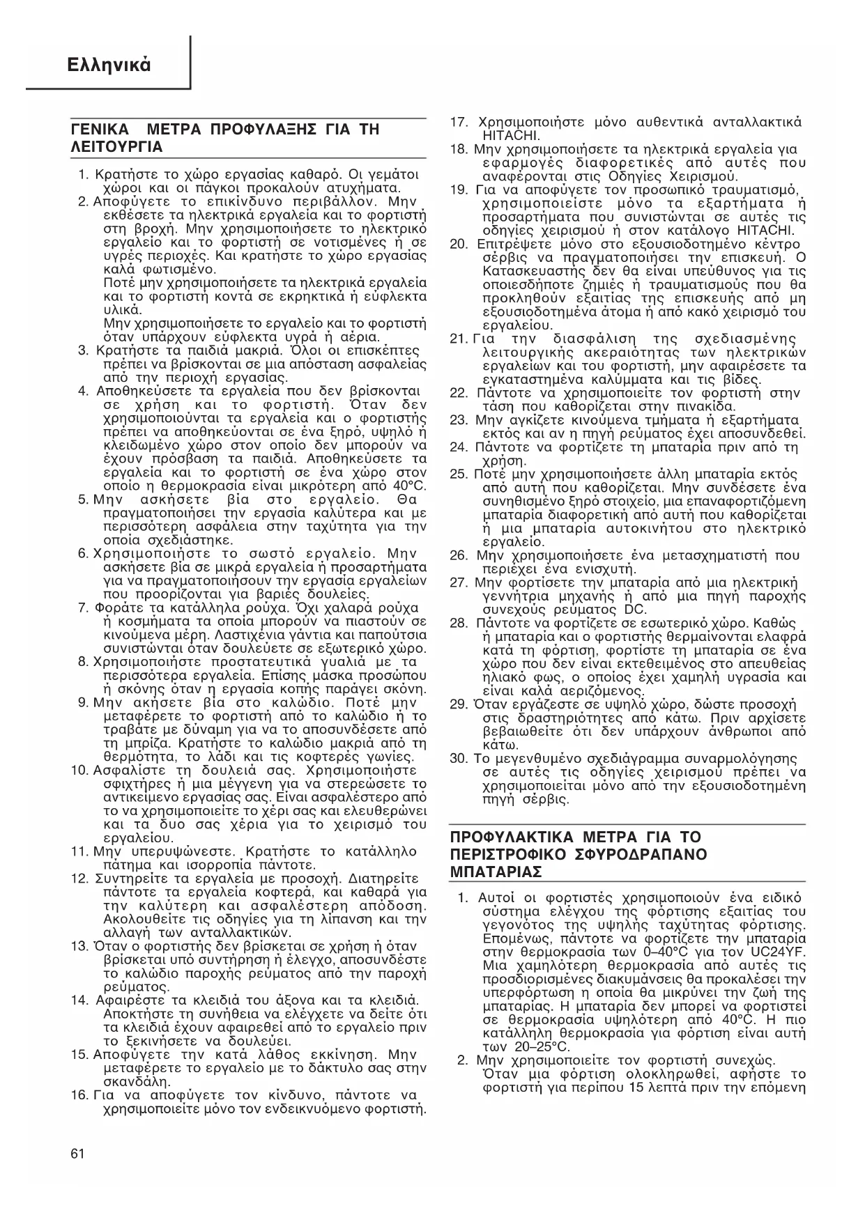 χρησιµοποιείστε µνο τα εξαρτήµατα ή προσαρτήµατα που συνιστώνται σε αυτές τις οδηγίες χειρισµού ή στον κατάλογο HITACHI.