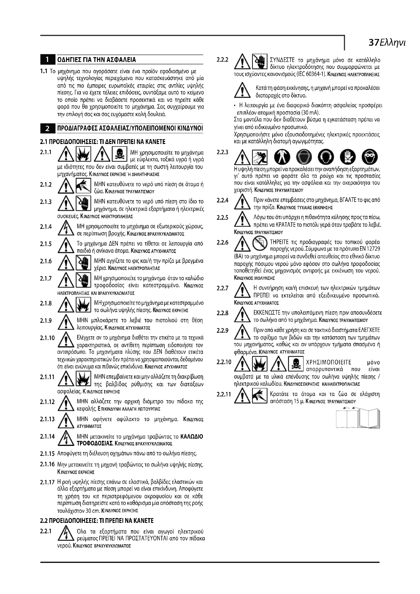 ΛΕΙΤΟΥΡΓΙΑΣ ΜΗΝ αφήνετε αφύλακτο το μηχάνημα. ΚΙΝ∆ΥΝΟΣ