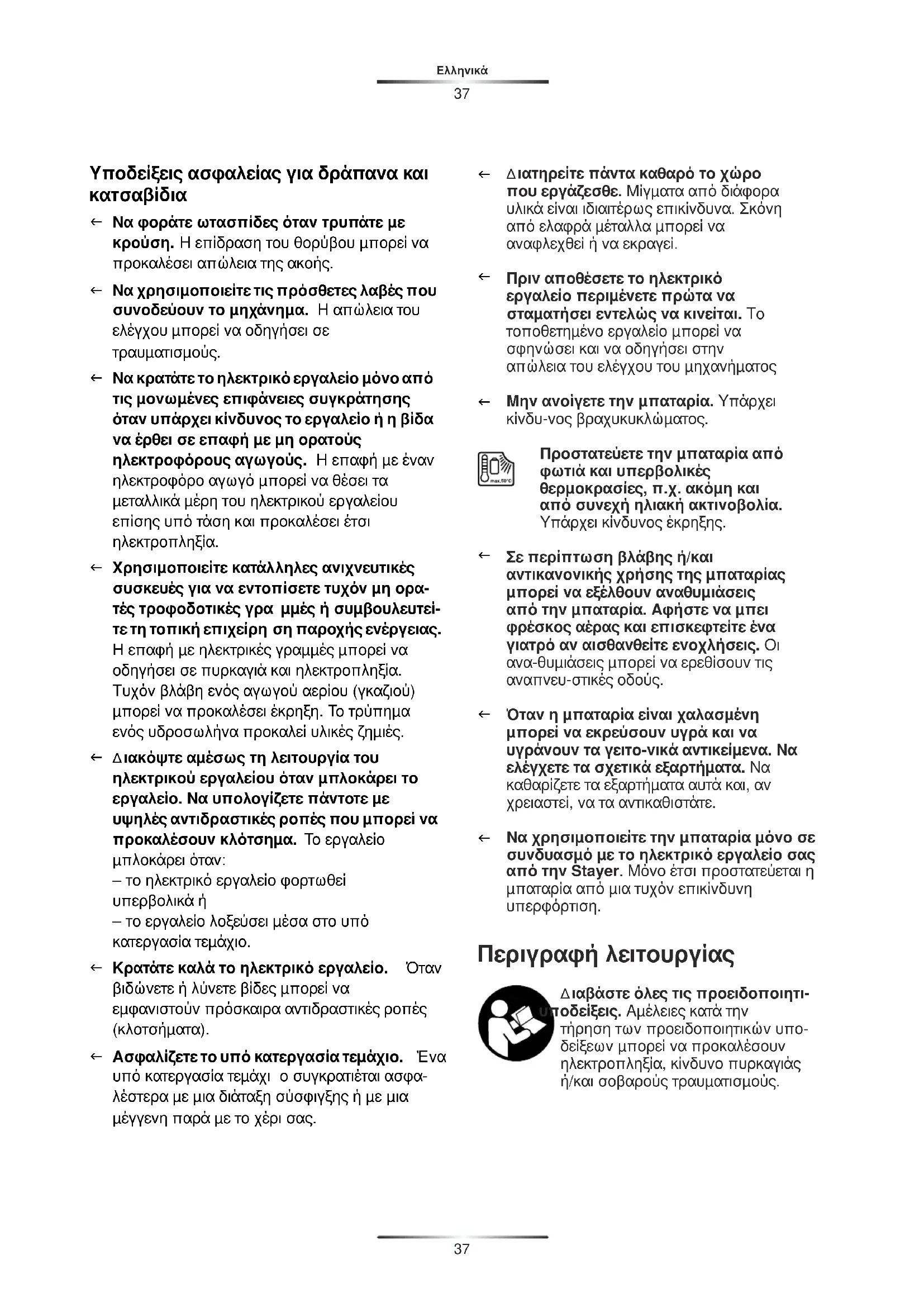 NaβαετεTO nλεκτρικό εργαλείο επανω σηβδα μονο ὄταν αὐτό βριακεται εκτόςλειουργίας. Περιστρεφόμενα εργαλείαμποείνα γλιοτρήσουν.