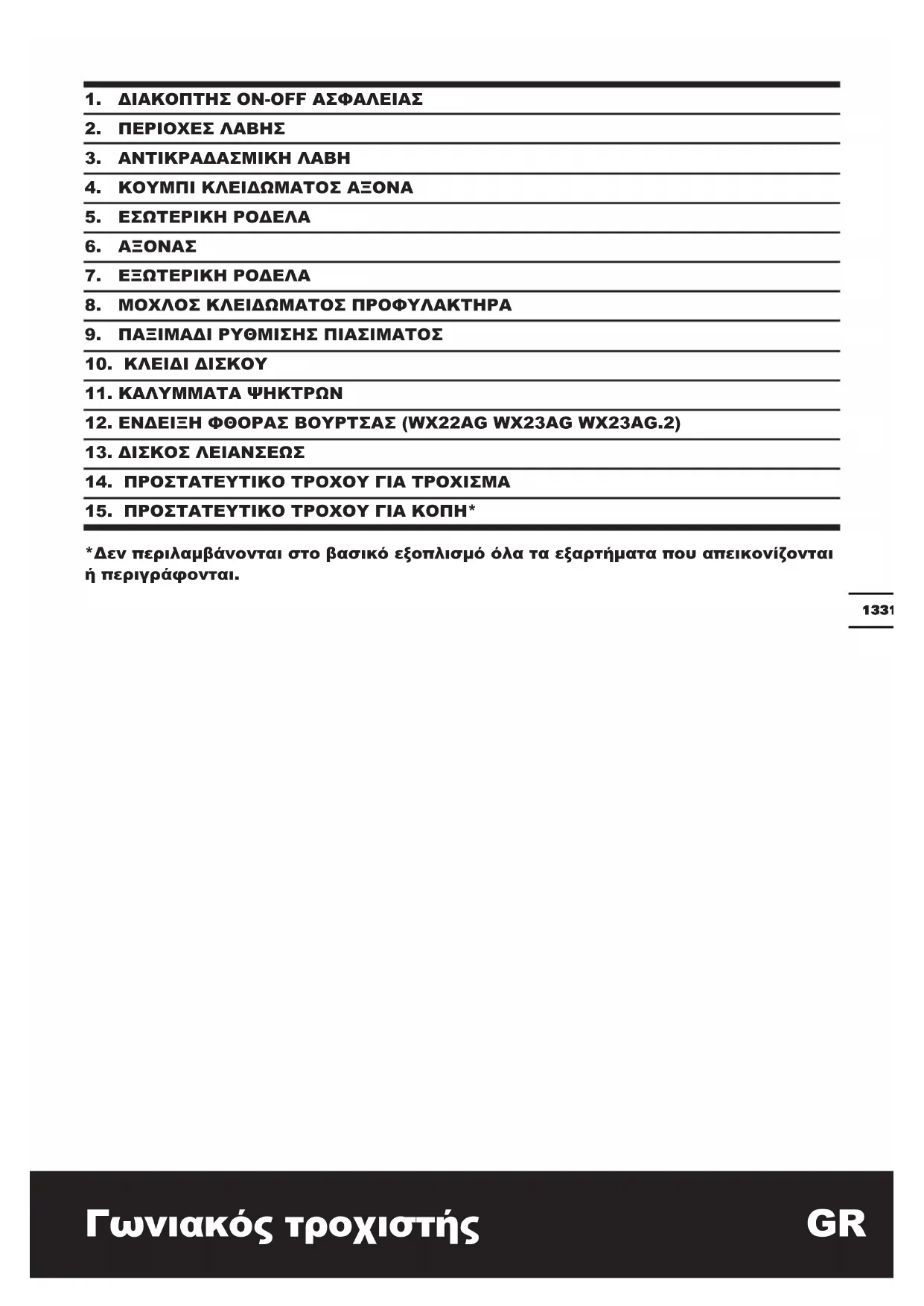 *Δεν περιλαμβάνονται στο βασικό εξοπλισμό όλα τα εξαρτήματα που απεικονίζονται ή περιγράφονται.Γωνιακός τροχιστής GR