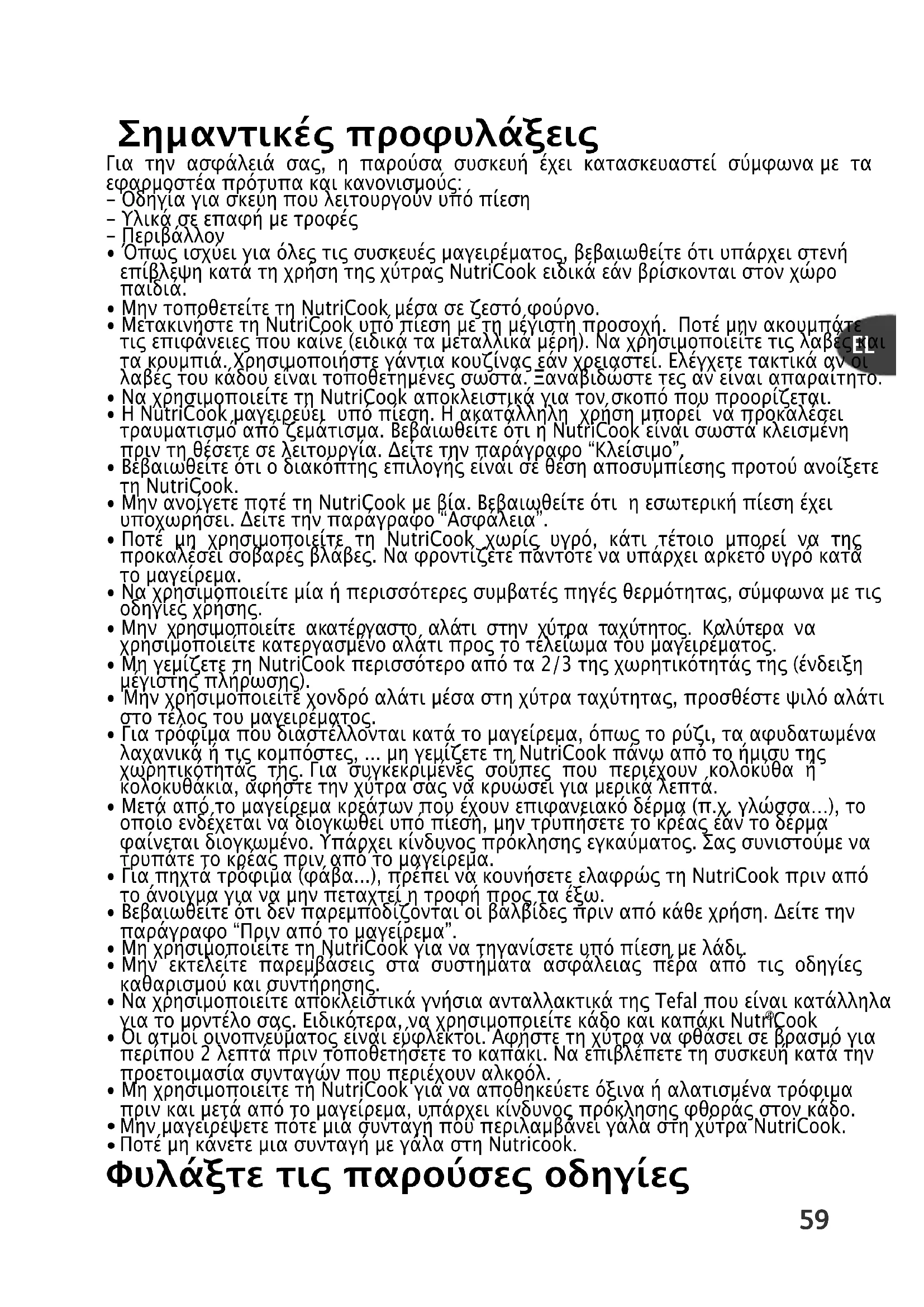 - Να χρησιμοποιείτε τη NutriCook αποκλειστικά για τον σκοπό που προορίζεται.