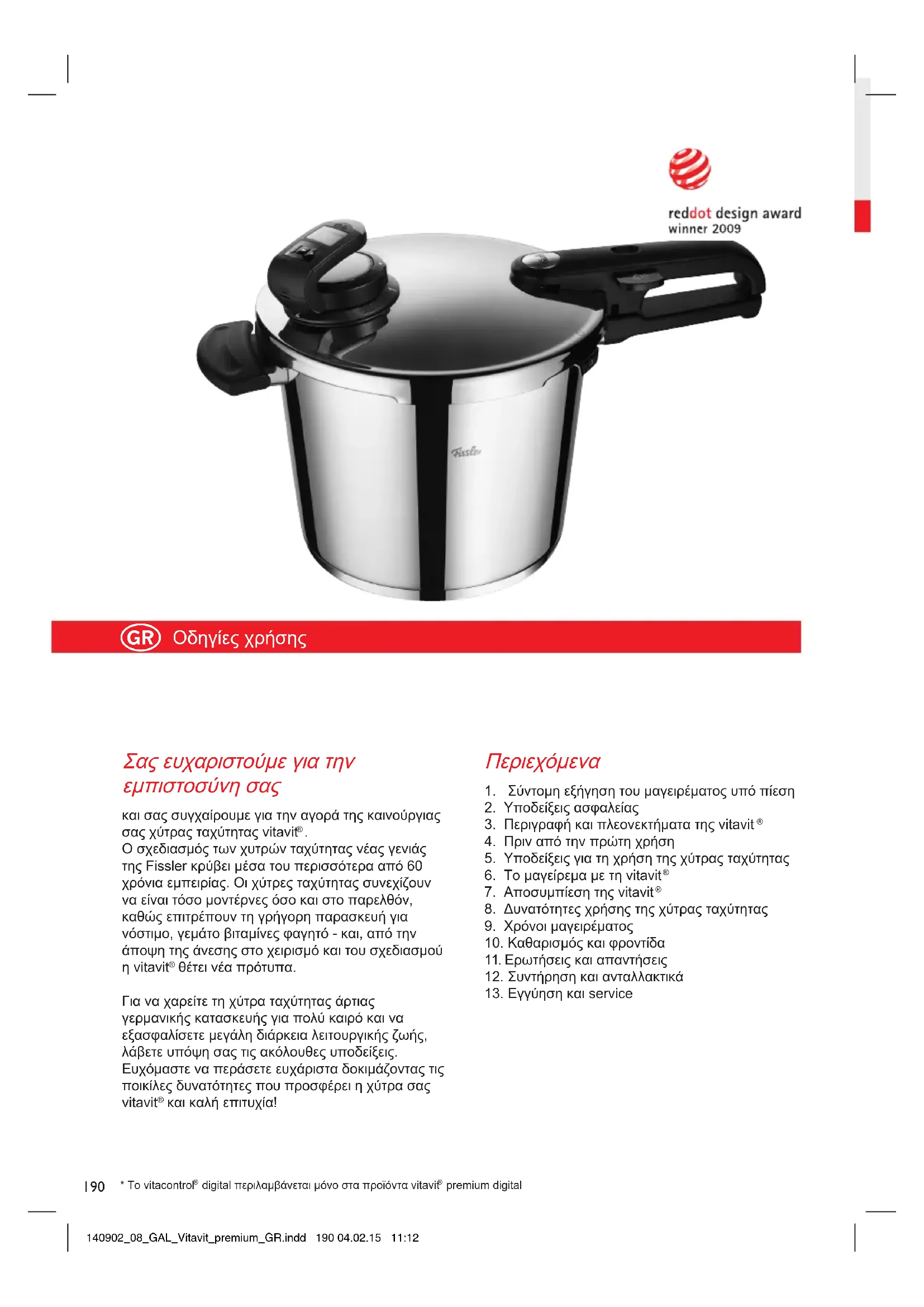 Vitavit Premium - κατσαρόλα Fissler - Δωρεάν εγχειρίδιο χρήσης