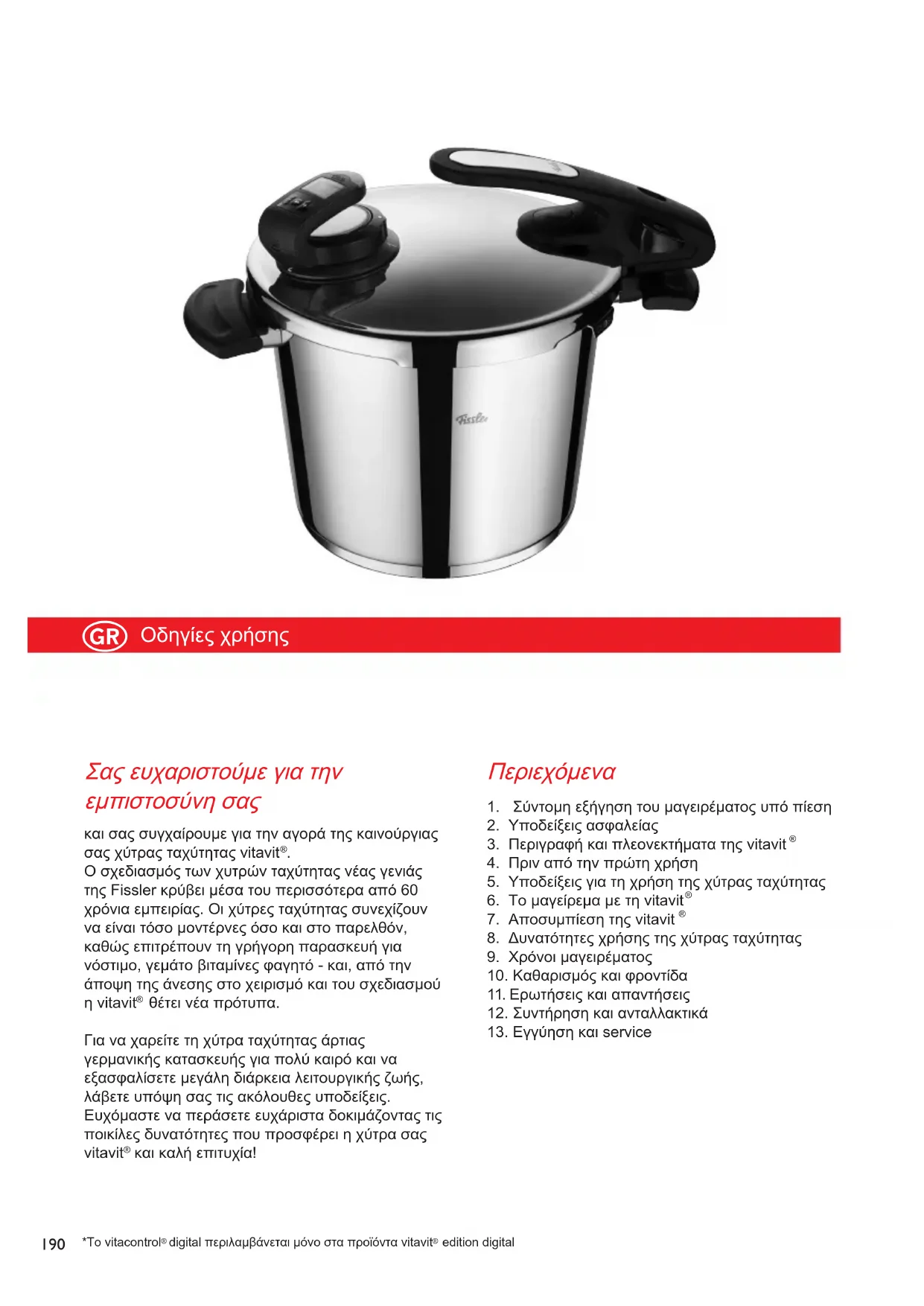 ΕΓΧΕΙΡΊΔΙΟ ΧΡΉΣΗΣ Vitavit Digital Fissler