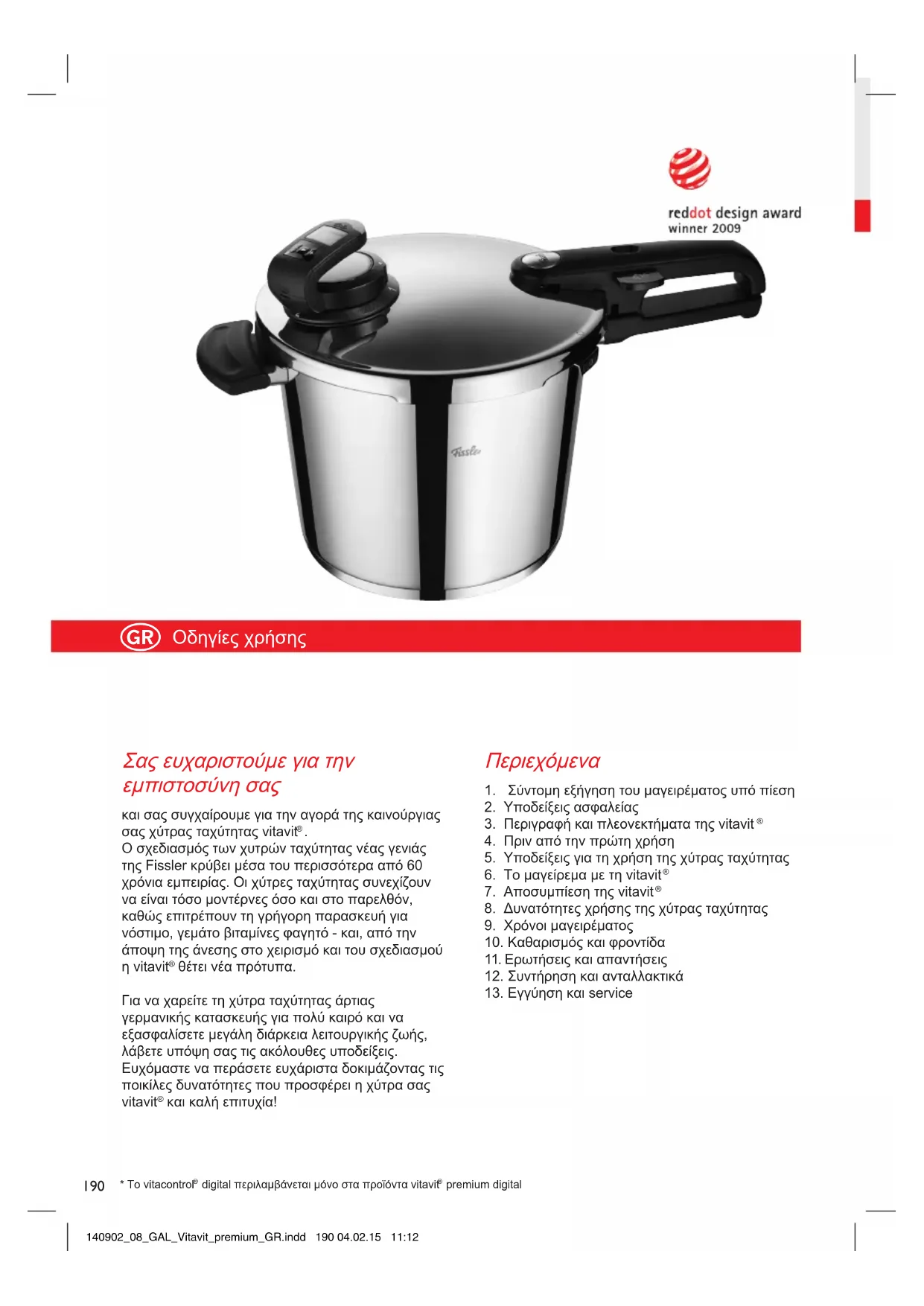 ΕΓΧΕΙΡΊΔΙΟ ΧΡΉΣΗΣ Vitavit Premium Digital Fissler