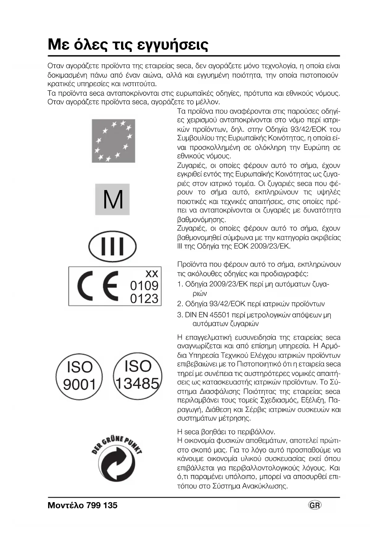 Τα προϊόντα secα ανταποκρίνονται στις ευρωπαϊκές οδηγίες, πρότυπα και εθνικούς νόμους. Όταν αγοράζετε προϊόντα secα, αγοράζετε το μέλλον.