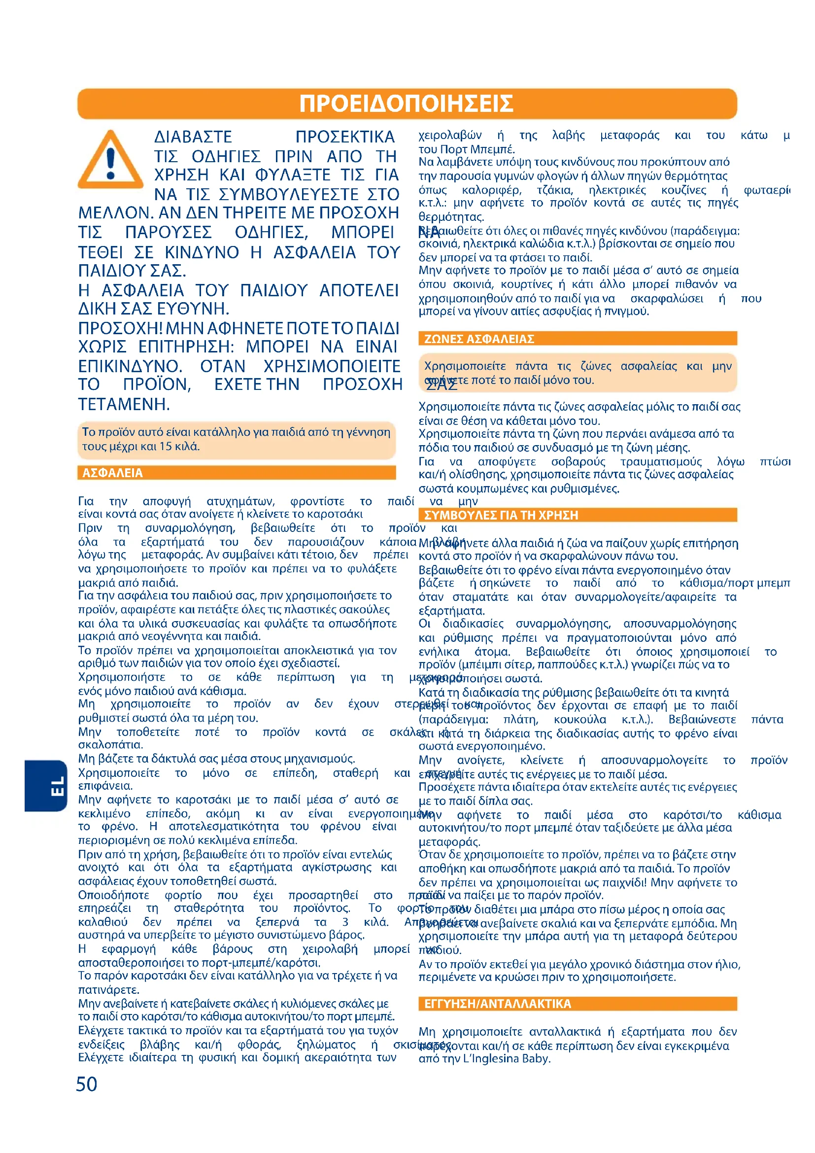 ΔΙΑΒΑΣΤΕ ΠΡΟΣΕΚΤΙΚΑ ΤΙΣ ΟΔΗΓΙΕΣ ΠΡΙΝ ΑΠΟ ΤΗ ΧΡΗΣΗ ΚΑΙ ΦΥΛΑΞΤΕ ΤΙΣ ΓΙΑ ΝΑ ΤΙΣ ΣΥΜΒΟΥΛΕΥΕΣΤΕ ΣΤΟ ΜΕΛΛΟΝ. ΑΝ ΔΕΝ ΤΗΡΕΙΤΕ ΜΕ ΠΡΟΣΟΧΗ ȫȡȪ ȨșȩȧȬȪȝȪ ȧȜȟțȡȝȪ ȤȨȧȩȝȡ ȥș ΤΕΘΕΙ ΣΕ ΚΙΝΔΥΝΟ Η ΑΣΦΑΛΕΙΑ ΤΟΥ ΠΑΙΔΙΟΥ ΣΑΣ. Η ΑΣΦΑΛΕΙΑ ΤΟΥ ΠΑΙΔΙΟΥ ΑΠΟΤΕΛΕΙ ΔΙΚΗ ΣΑΣ ΕΥΘΥΝΗ. ΠΡΟΣΟΧΗ! ΜΗΝ ΑΦΗΝΕΤΕ ΠΟΤΕ ΤΟ ΠΑΙΔΙ ΧΩΡΙΣ ΕΠΙΤΗΡΗΣΗ: ΜΠΟΡΕΙ ΝΑ ΕΙΝΑΙ ΕΠΙΚΙΝΔΥΝΟ. ΟΤΑΝ ΧΡΗΣΙΜΟΠΟΙΕΙΤΕ ȫȧ Ȩȩȧȵȧȥ ȝȮȝȫȝȫȟȥ ȨȩȧȪȧȮȟ ȪșȪ