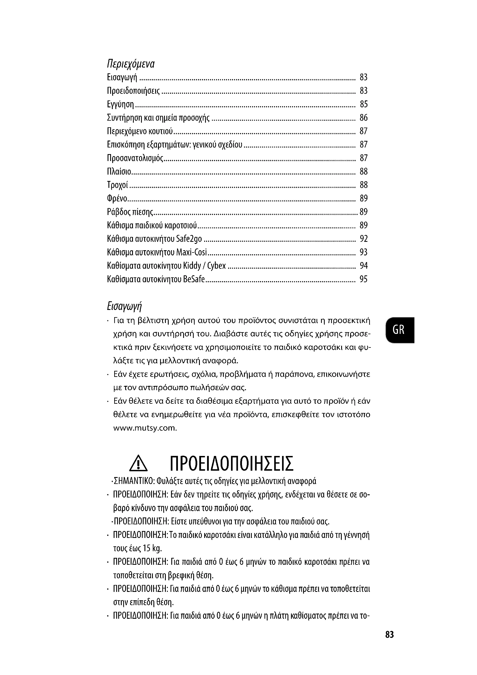 - Για τη βέλτιοτη χρήσι autou tou προίντος Συνίοτάαι η προεκτική χρήσι και συντήροσηου. Διαβάσε autες τις ὅπηγίες χρήσις προεκτικά πρινξεκίνησετενα χρησιμοποίειτο παιδιόκό καροτόκίι και φύλαξετις γία μελλοντική αναφόρά.