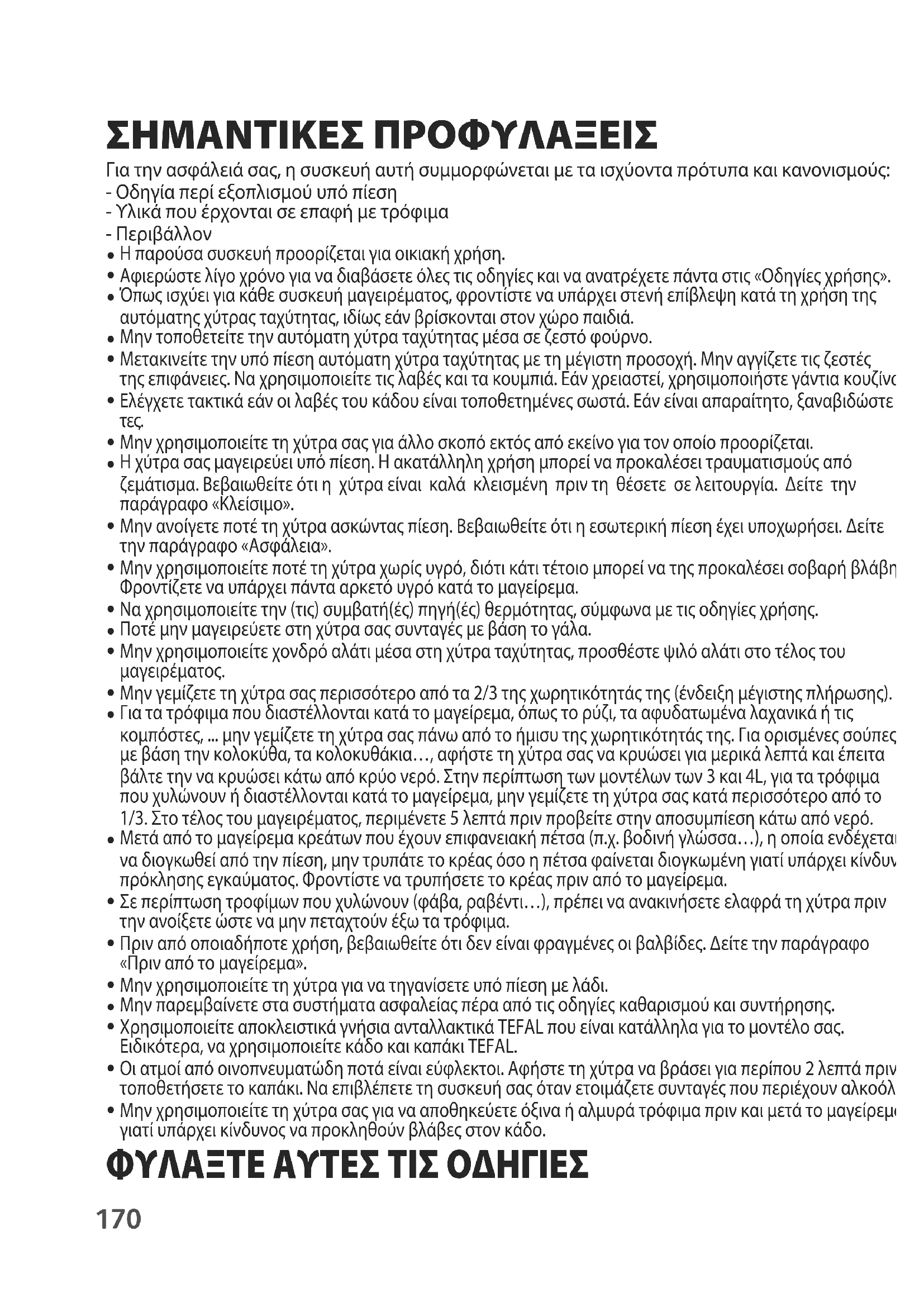 Μην χρησιμοποιείτε τη χύτρα σας για να αποθηκεύετε όξινα ή αλμυρά τρόφιμα πριν και μετά το μαγείρεμα, γιατί υπάρχει κίνδυνος να προκληθούν βλάβες στον κάδο. ΦΥΛΑΞΤΕ ΑΥΤΕΣ ΤΙΣ ΟΔΗΓΙΕΣ171