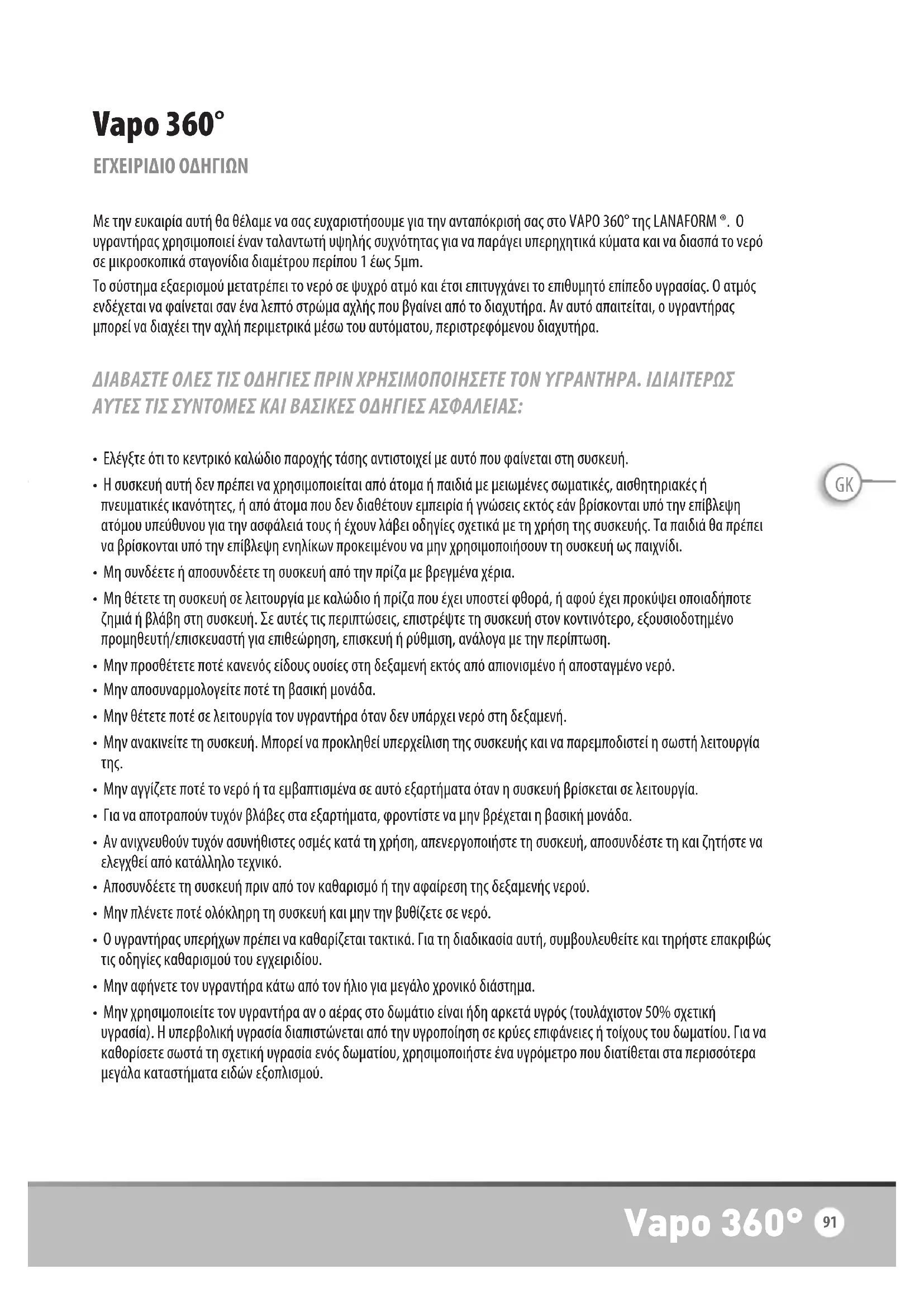 ΕΓΧΕΙΡΊΔΙΟ ΧΡΉΣΗΣ Vapo 360 LANAFORM