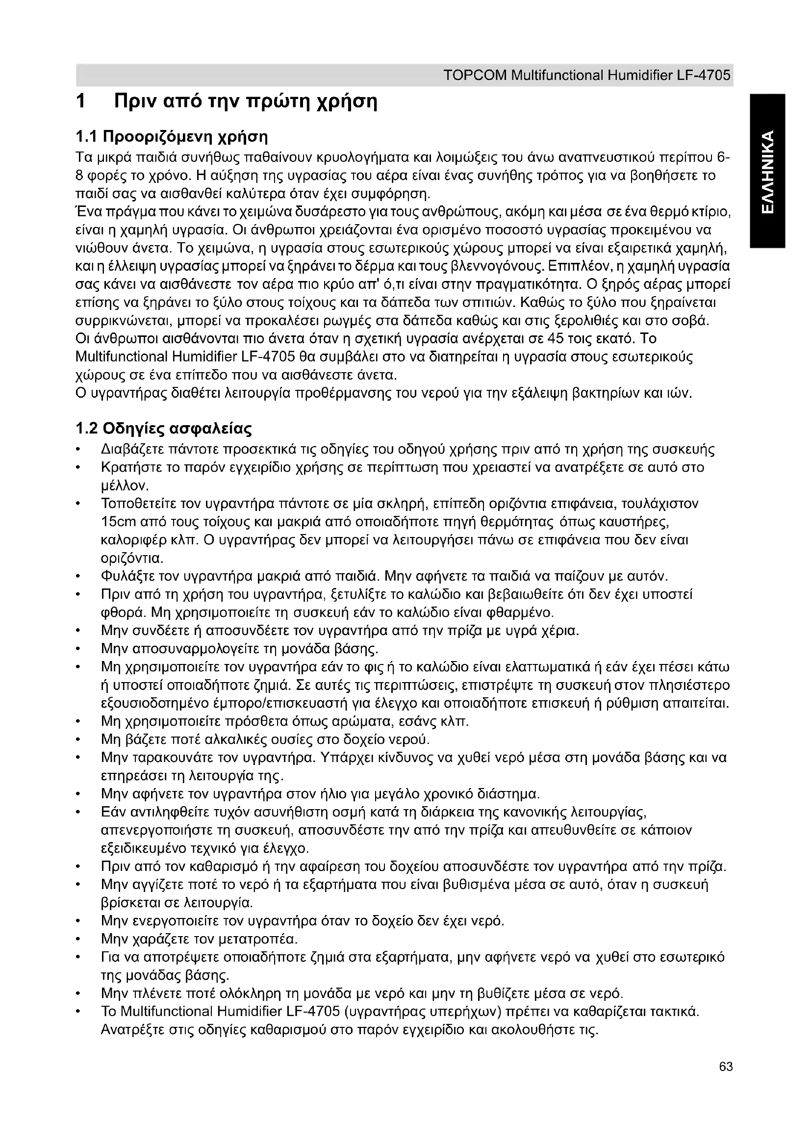 TOPCOM Multifunctional Humidifier LF-4705 1 Πριν από την πρώτη χρήση