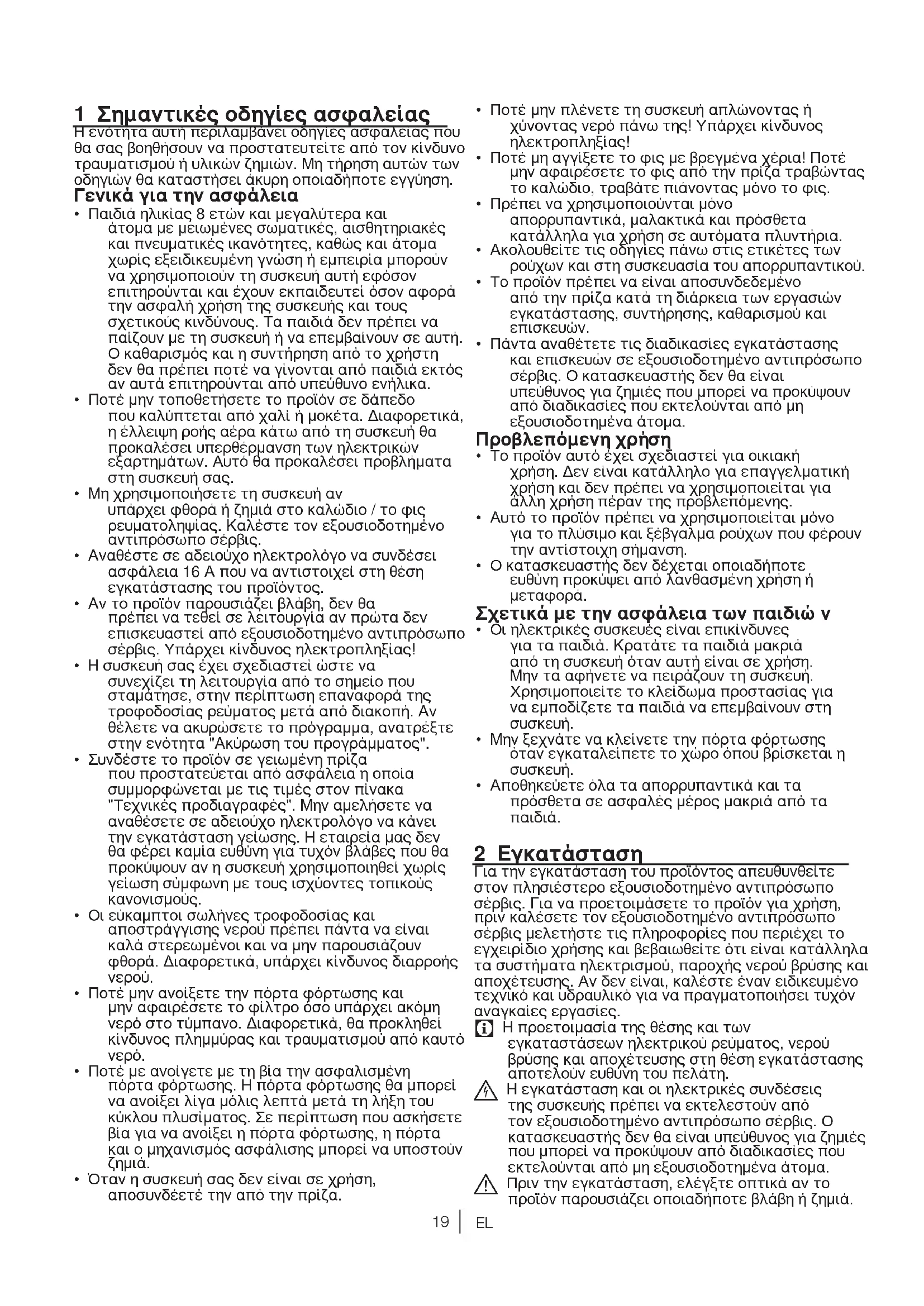 - Ενδέχεται να έχει παραμείνει στη συσκευή σας μικρή ποσότητα νερού λόγω των διαδικασιών ελέγχου ποιότητας στο εργοστάσιο. >>> Αυτό δεν αποτελεί ένδειξη βλάβης. Το νερό δεν είναι επιβλαβές για τη