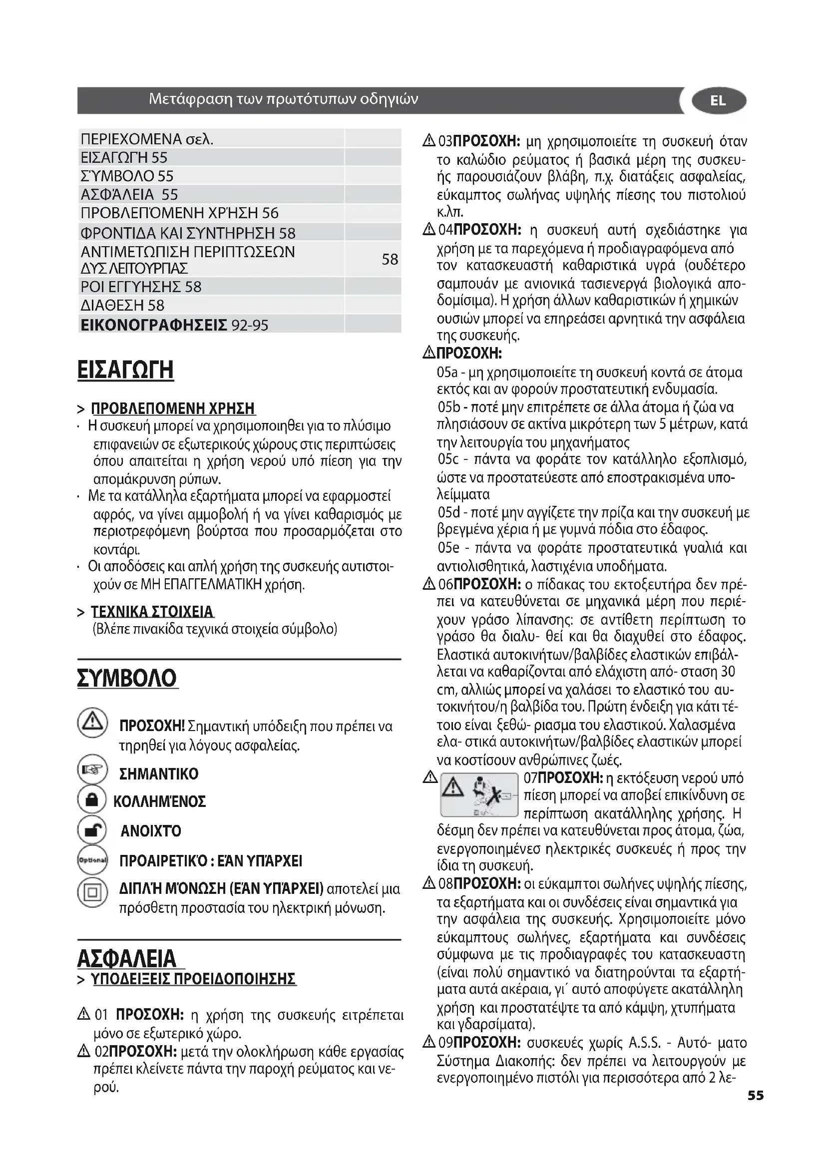 ΠΕΡΙΕΧΟΜΕΝΑ σελ. ΕΙΣΑΓΩΓΉ 55 ΣΎΜΒΟΛΟ 55 ΑΣΦΆΛΕΙΑ 55 ΠΡΟΒΛΕΠΌΜΕΝΗ ΧΡΉΣΗ 56 ΦΡΟΝΤΙΔΑ ΚΑΙ ΣΥΝΤΗΡΗΣΗ 58 ΑΝΤΙΜΕΤΩΠΙΣΗ ΠΕΡΙΠΤΩΣΕΩΝ ΔΥΣ ΛΕΙΤΟΥΡΓΙΑΣ