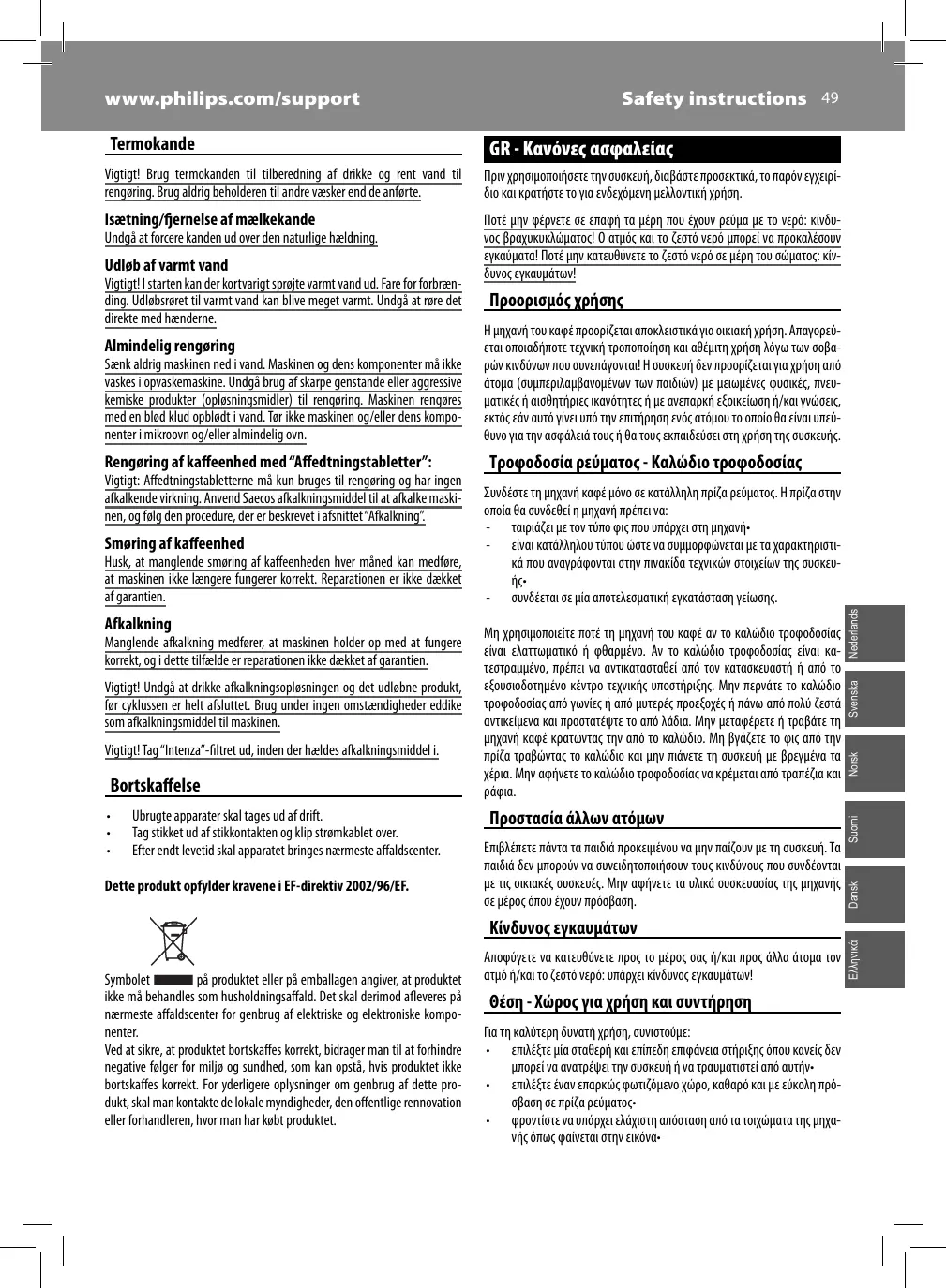 Καλώς ήλθες στον κόσμο της Philips Saeco! Κάνε την εγγραφή σου στην ιστοσελίδα WWW.PHILIPS.COM/WELCOME για να λαμβάνεις συμβουλές και ενημερώσεις σχετικά με την συντήρηση. Σε αυτό το βιβλιαράκι περιέχονται σύντομες οδηγίες για την σωστή λειτουργία της μηχανής. Στην συσκευασία της μηχανής υπάρχει ένα CD που περιέχει το πλήρες εγχειρίδιο στην γλώσσα σου. Βάλε το CD στον υπολογιστή σου και θα καθοδηγηθείς στην αναζήτηση του εγγράφου που επιθυμείς. Επιπλέον, μπορείς να κατεβάσεις την τελευταία έκδοση του εγχειριδίου χρήσης από την ιστοσελίδα www.philips.com/support (ψάξε με τον αριθμό μοντέλου που αναγράφεται στην πρώτη σελίδα).