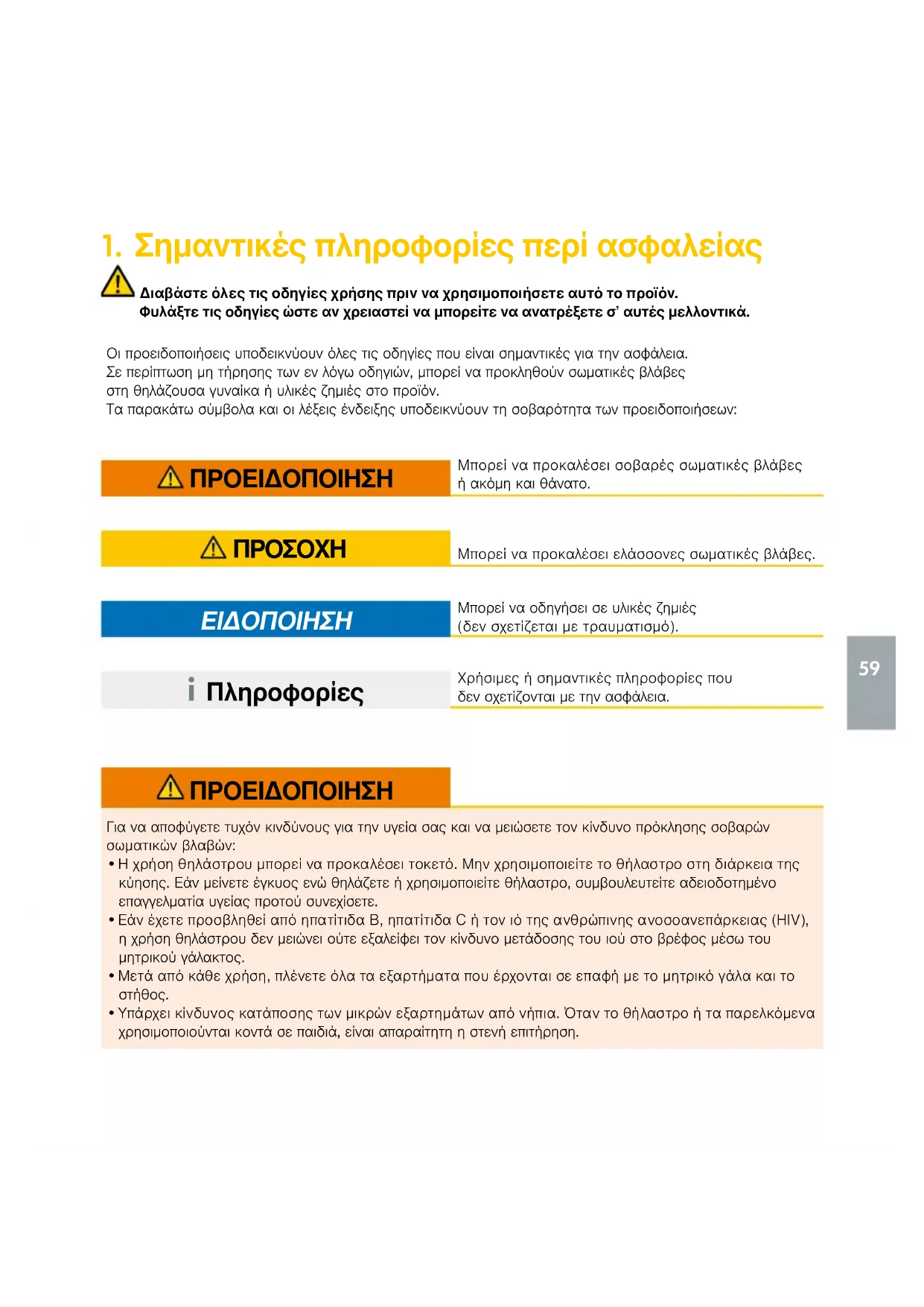 1. Σημαντικές πληροφορίες περί ασφαλείας 59