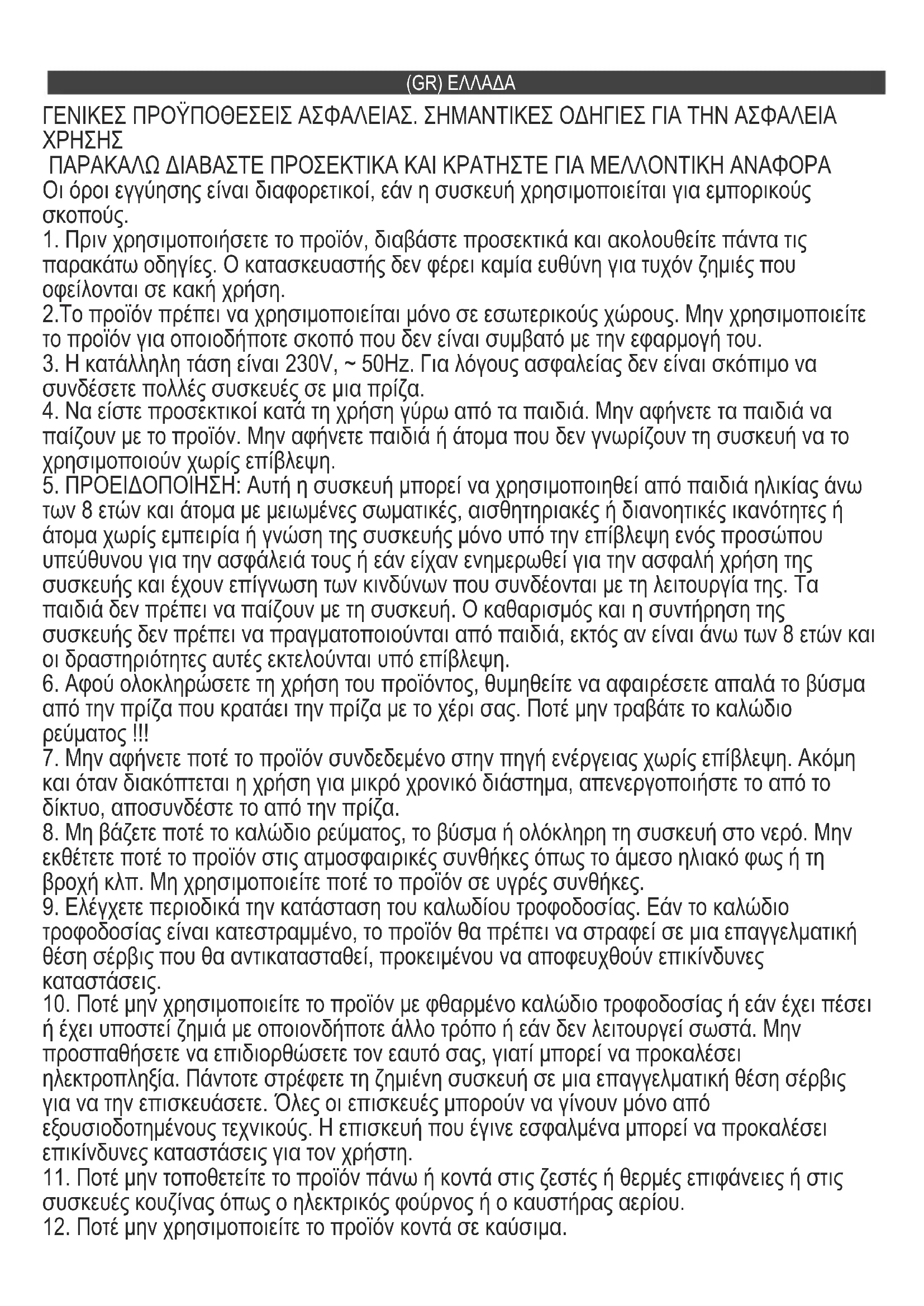 ΠΑΡΑΚΑΛΩ ΔΙΑΒΑΣΤΕ ΠΡΟΣΕΚΤΙΚΑ ΚΑΙ ΚΡΑΤΗΣΤΕ ΓΙΑ ΜΕΛΛΟΝΤΙΚΗ ΑΝΑΦΟΡΑ Οι όροι εγγύησης είναι διαφορετικοί, εάν η συσκευή χρησιμοποιείται για εμπορικούς