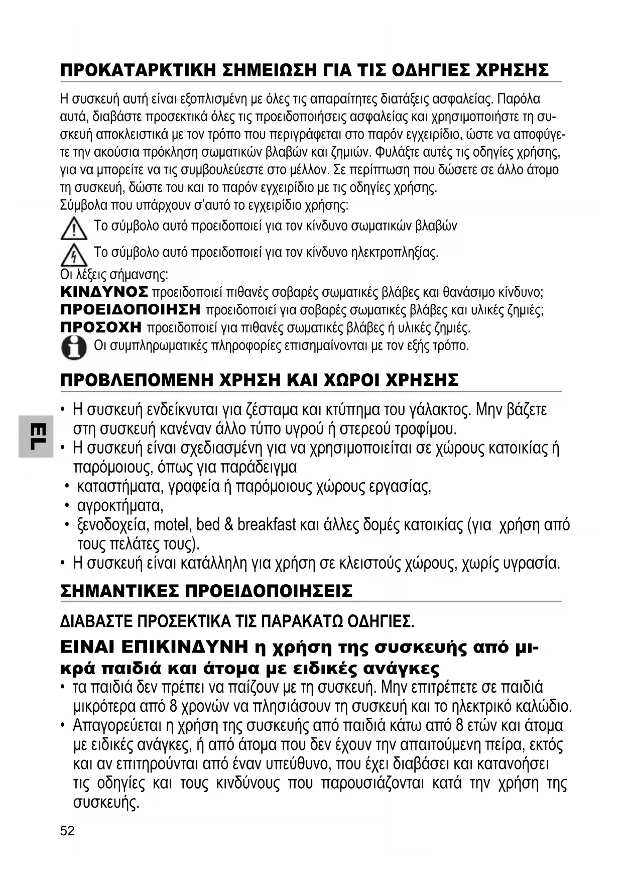 - Η συσκευή ενδείκνυται για ζέσταμα και κτύπημα του γάλακτος. Μην βάζετε στη συσκευή κανέναν άλλο τύπο υγρού ή στερεού τροφίμου.
