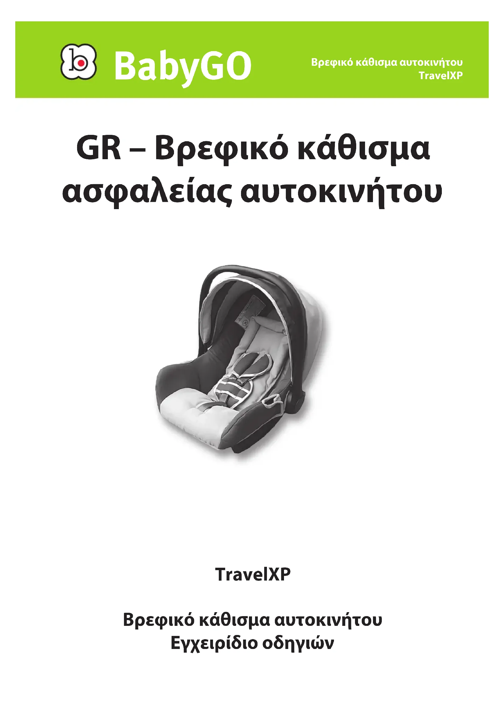 Κατεβάστε τις οδηγίες για το κάθισμα αυτοκινήτου σε μορφή PDF δωρεάν! Βρείτε το εγχειρίδιό σας Traveller - BabyGO και πάρτε ξανά την ηλεκτρονική σας συσκευή στα χέρια σας. Σε αυτή τη σελίδα δημοσιεύονται όλα τα έγγραφα που απαιτούνται για τη χρήση της συσκευής σας. Traveller της μάρκας BabyGO.