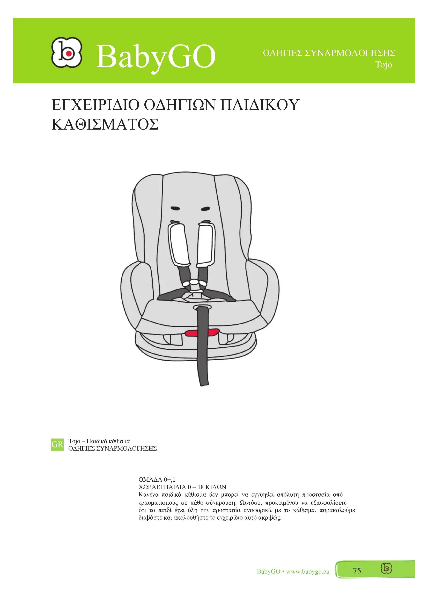 Tojo - κάθισμα αυτοκινήτου BabyGO - Δωρεάν εγχειρίδιο χρήσης