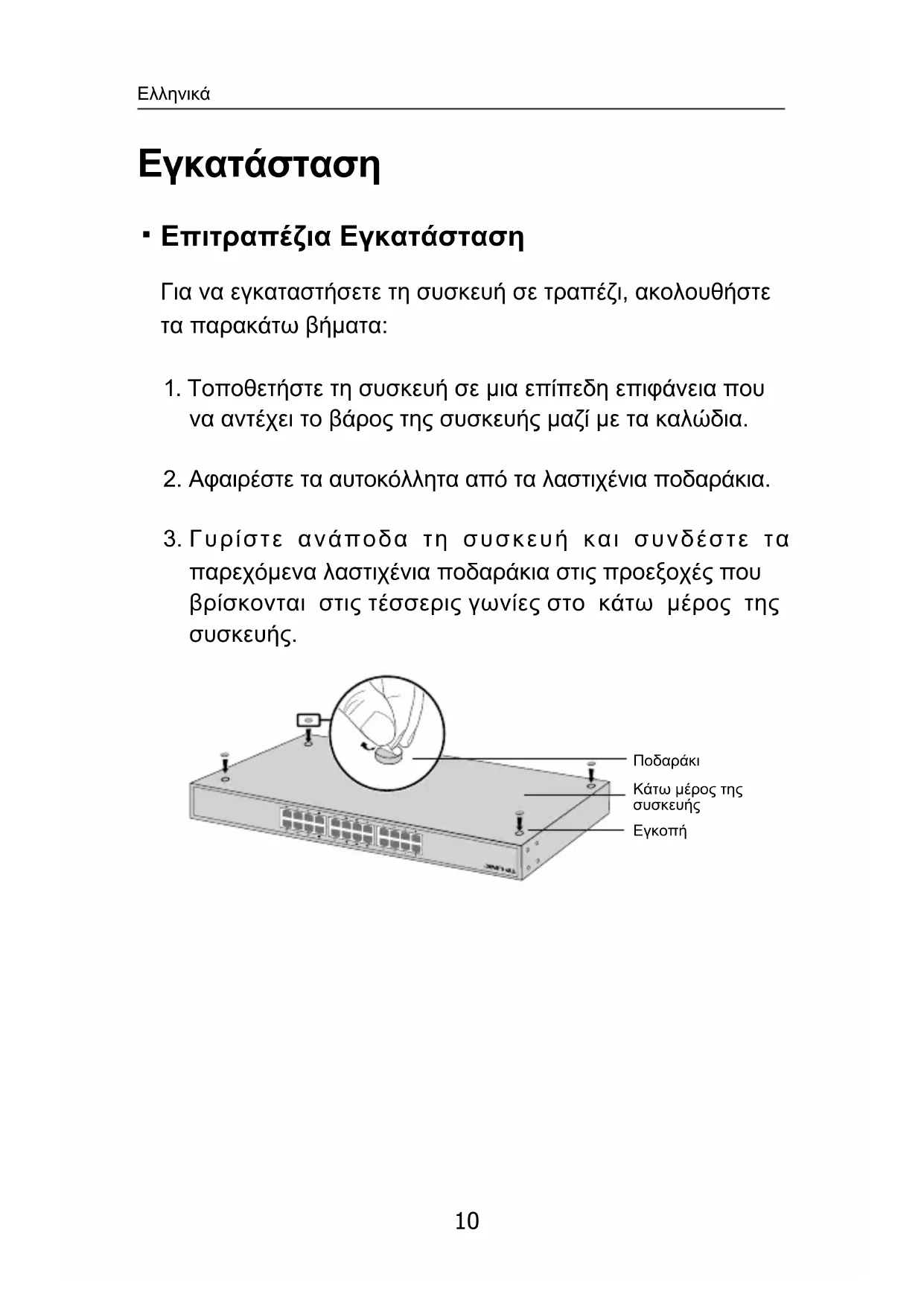 Επιτραπέζια Εγκατάσταση Για να εγκαταστήσετε τη συσκευή σε τραπέζι, ακολουθήστε τα παρακάτω βήματα:
