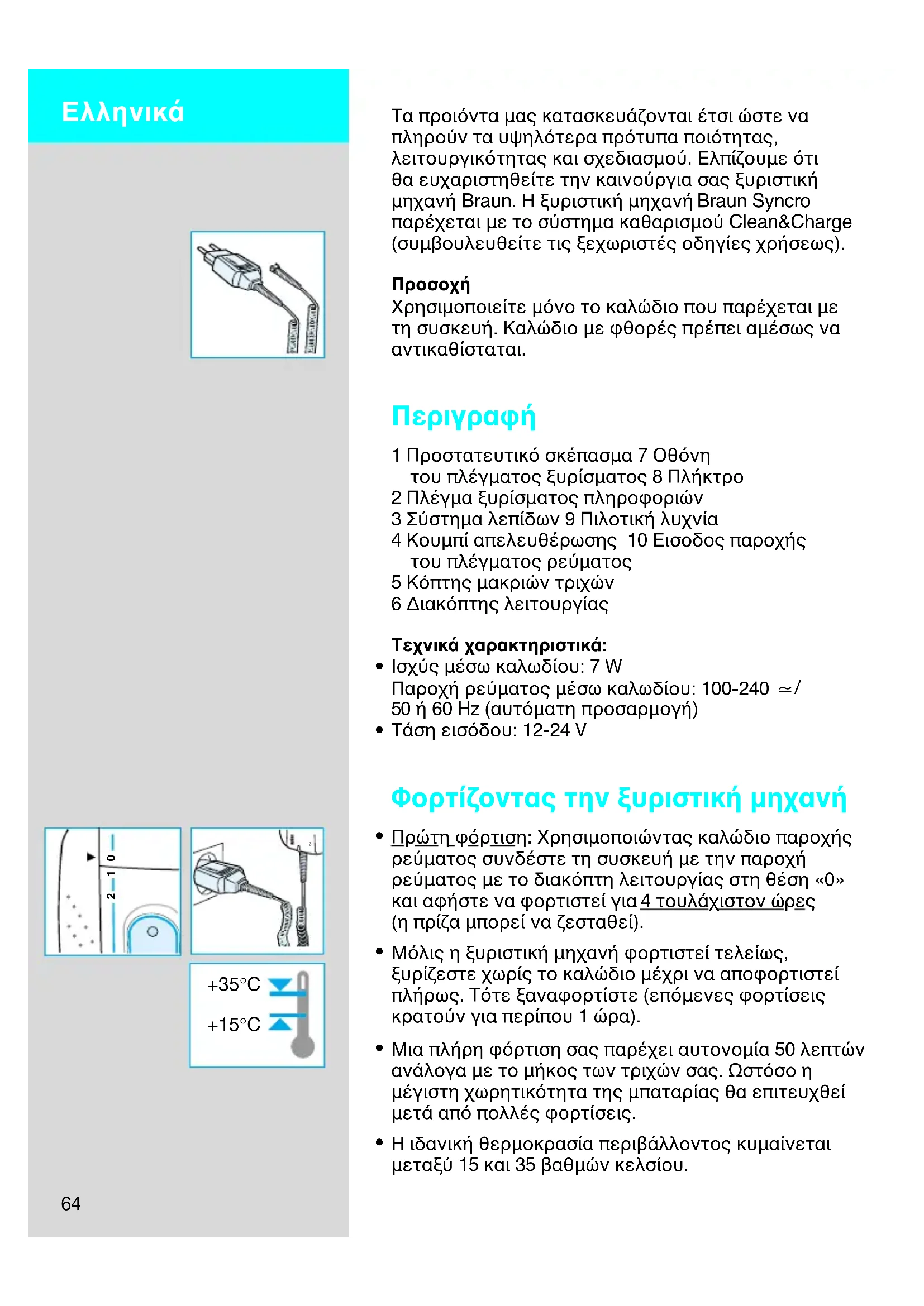 5491458_S 4-78 Seite 63 Freitag, 7. April 2000 9:37 0964 Τα προιντα µας κατασκευζονται τσι στε να πληρον τα υψηλτερα πρτυπα ποιτητας, λειτουργικτητας και σχεδιασµο. Ελπζουµε τι θα ευχαριστηθετε την καινοργια σας ξυριστικ" µηχαν" Braun. Η ξυριστικ" µηχαν" Braun Syncro παρχεται µε το σστηµα καθαρισµο Clean&Charge (συµβουλευθετε τις ξεχωριστς οδηγες χρ"σεως).