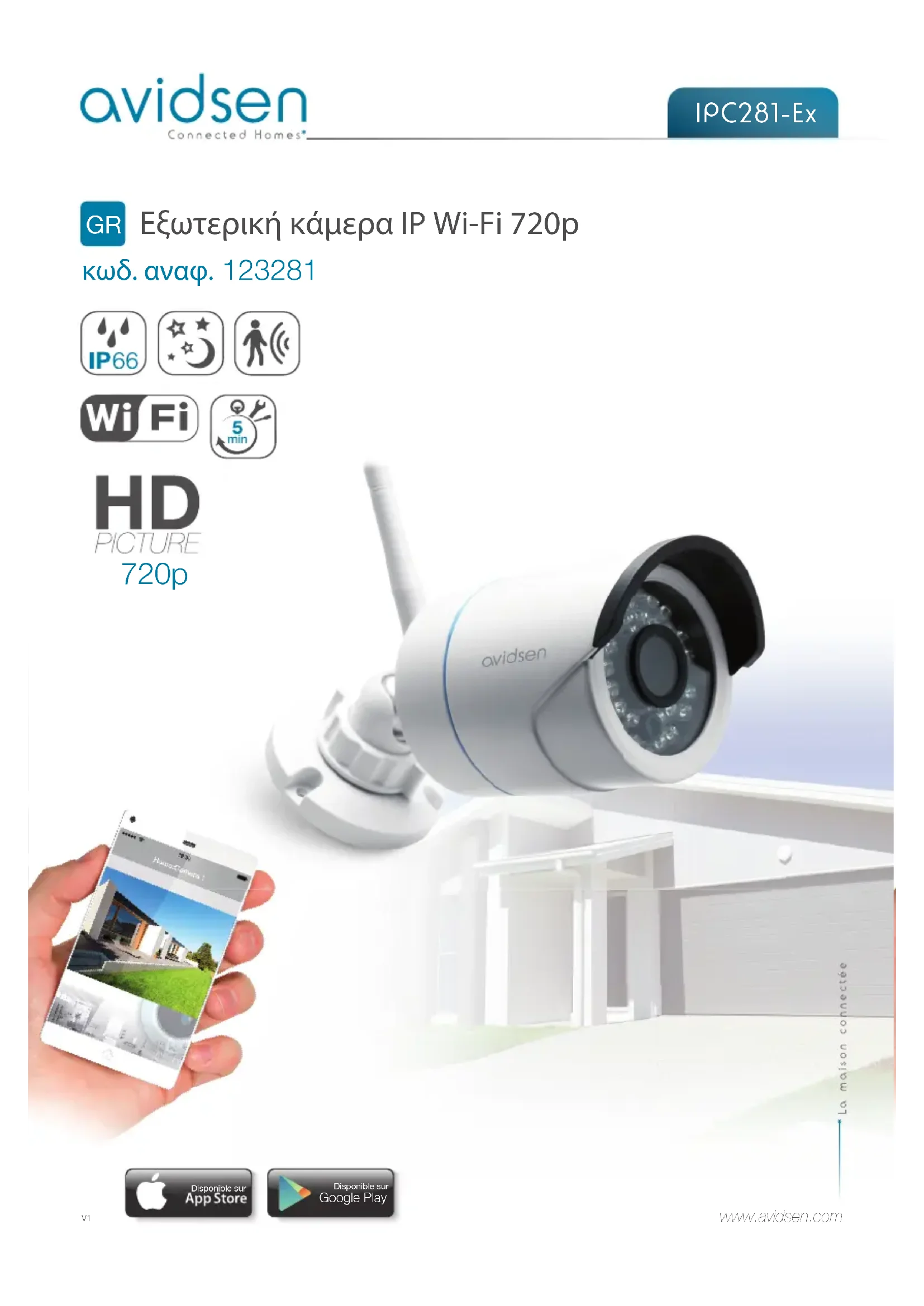 Κατεβάστε τις οδηγίες για το Κάμερα παρακολούθησης σε μορφή PDF δωρεάν! Βρείτε το εγχειρίδιό σας 123281 WiFi - AVIDSEN και πάρτε ξανά την ηλεκτρονική σας συσκευή στα χέρια σας. Σε αυτή τη σελίδα δημοσιεύονται όλα τα έγγραφα που απαιτούνται για τη χρήση της συσκευής σας. 123281 WiFi της μάρκας AVIDSEN.