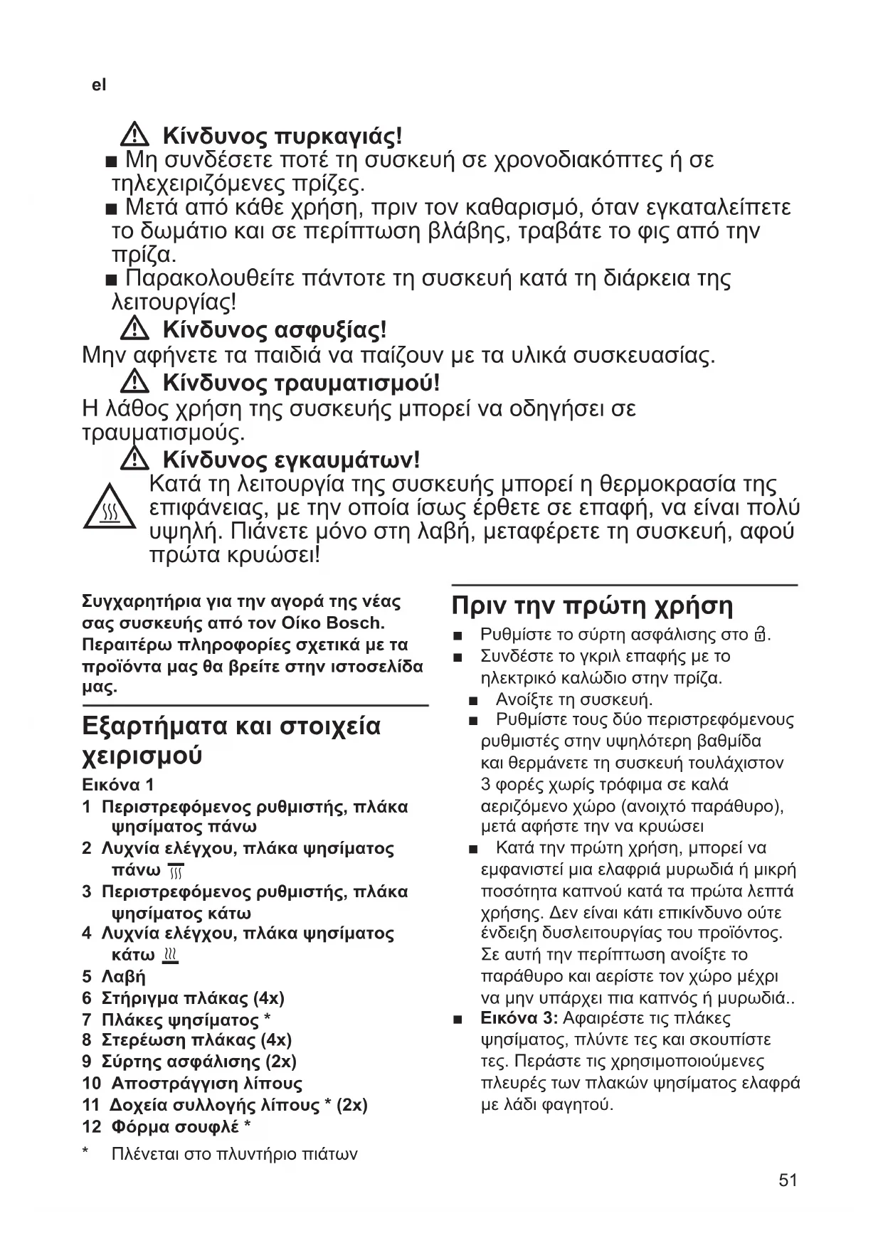 Σημαντικό: Mη λειτουργείτε Ση συσκεύπη χωρίς πλάκες ψησιματος! Mην ξύνετε TIG ΕΠΙΟΡωμένες πλάκες με αίχμηρα αντικείμενα!