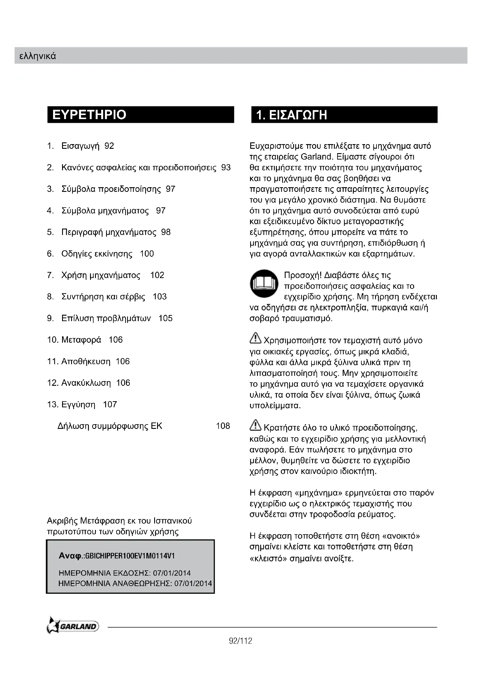 ΕΓΧΕΙΡΊΔΙΟ ΧΡΉΣΗΣ Chipper 100 E GARLAND
