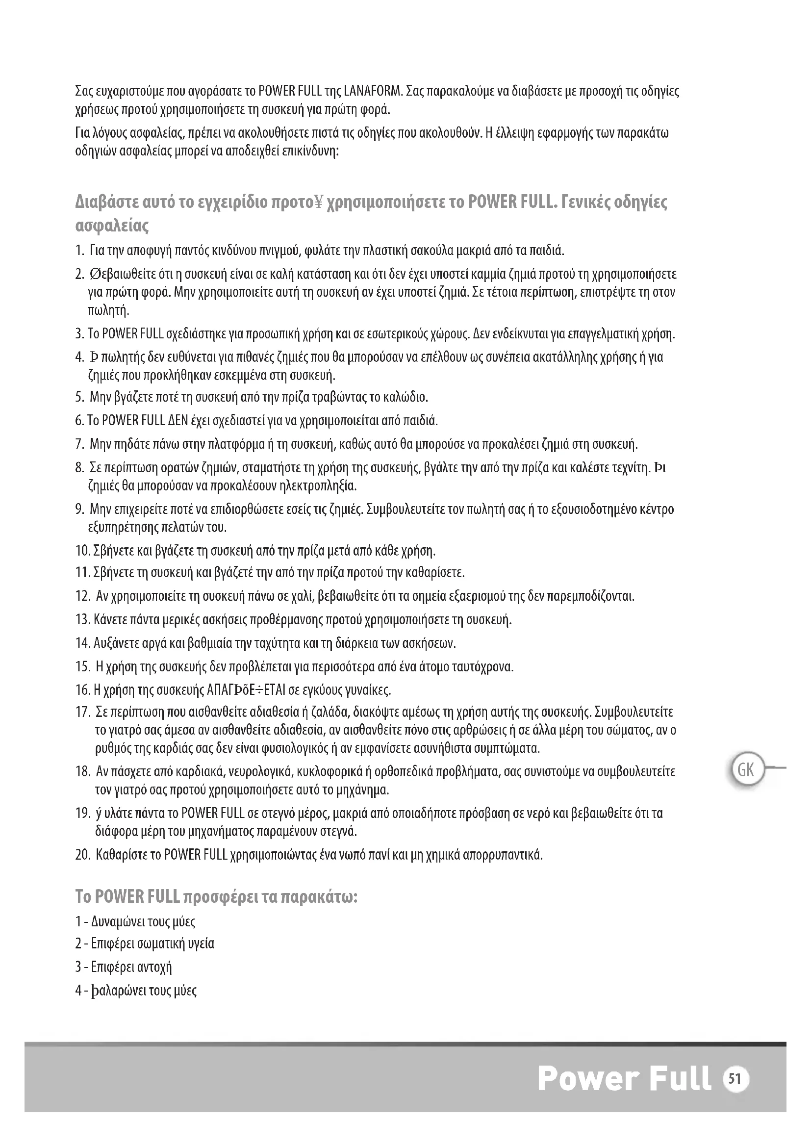 Power Full 51GK Για να μεγιστοποιήσετε τις ωφέλειες του POWER FULL, προσέξτε τα παρακάτω σημεία: