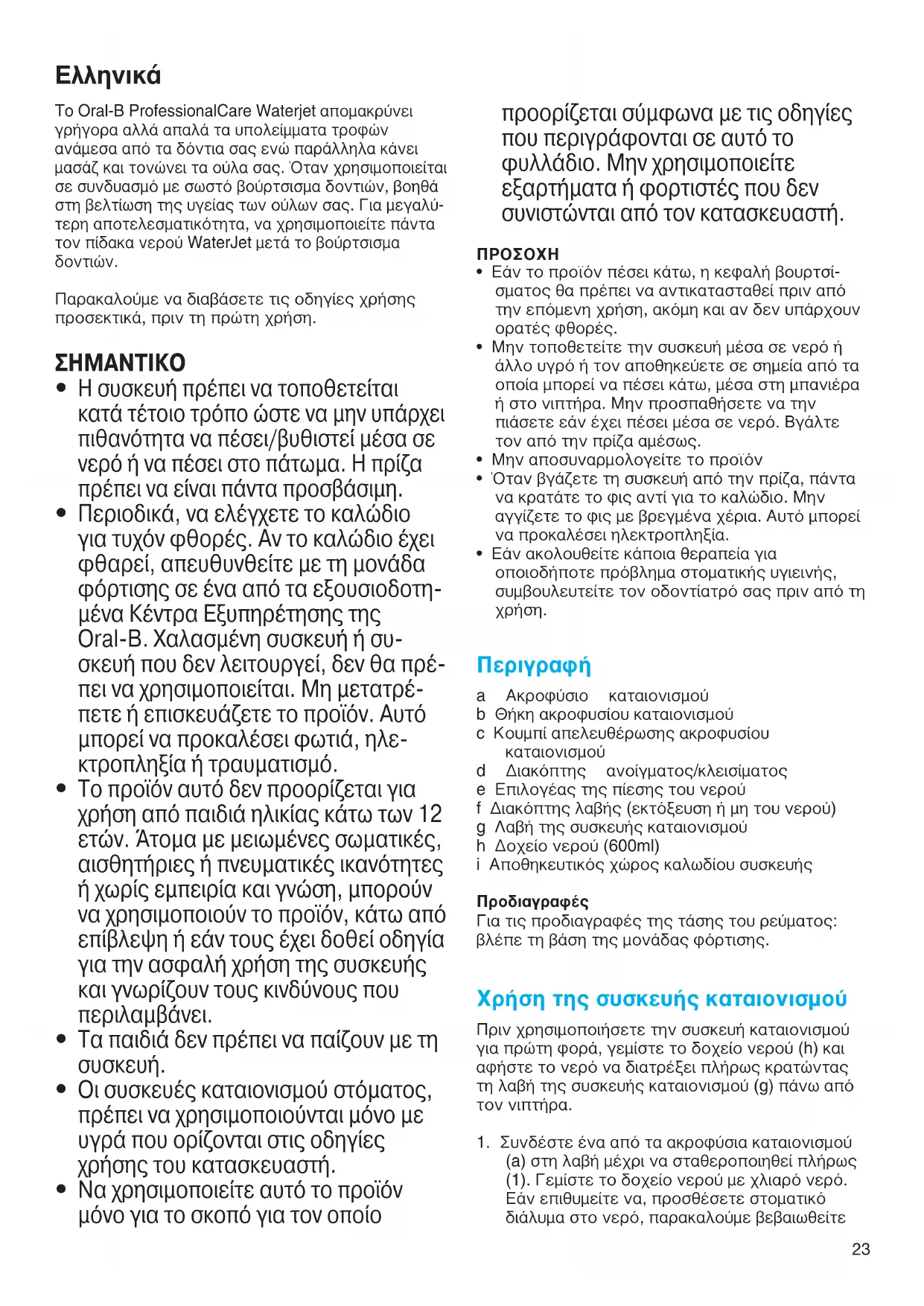 ΕΓΧΕΙΡΊΔΙΟ ΧΡΉΣΗΣ Professional Care WaterJet BRAUN