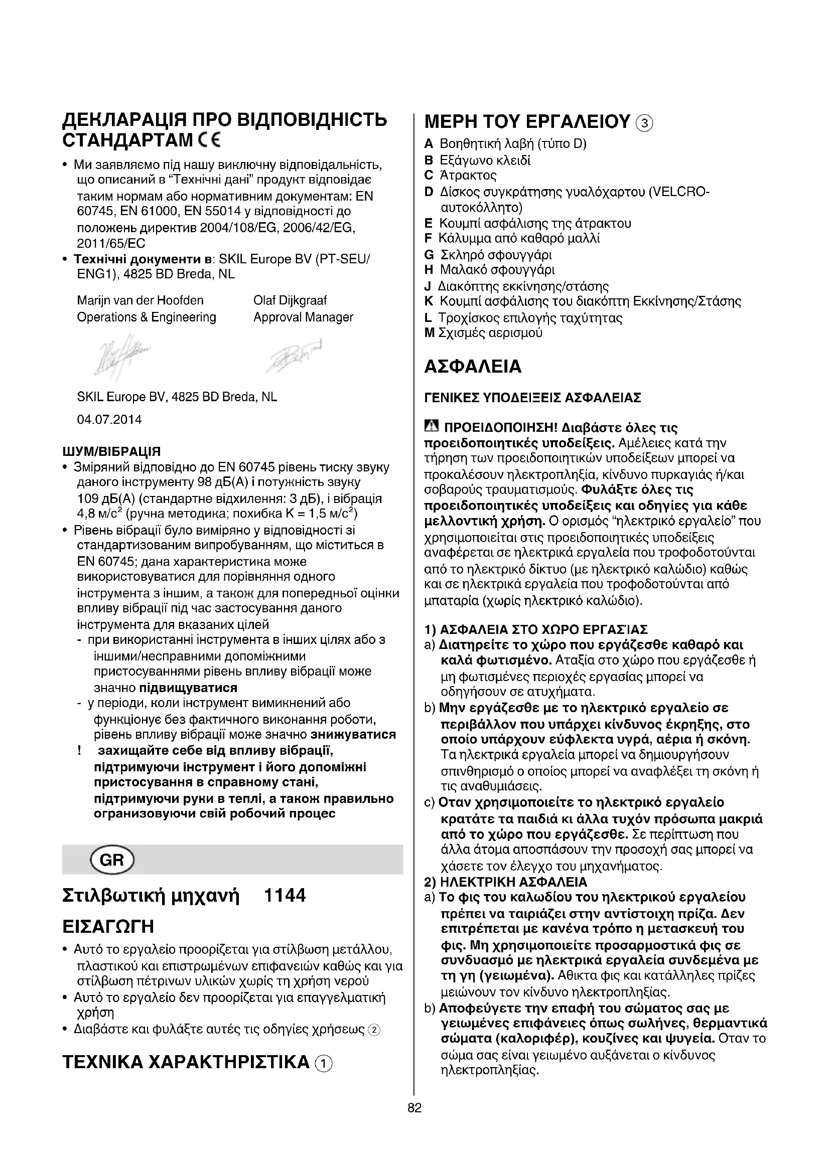 - Téxvićóc ákéloç anó: SKIL Europe BV (PT-SEU/ENG1), 4825 BD Breda, NL