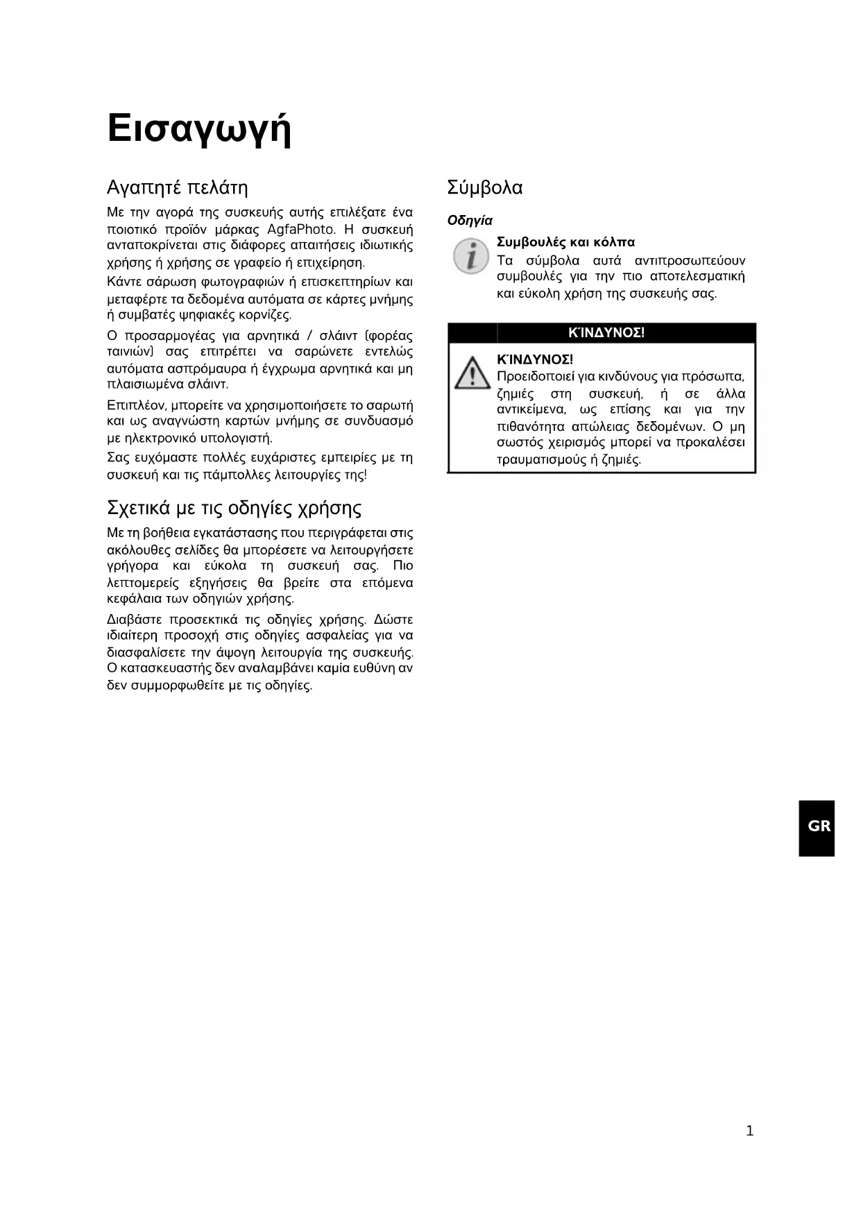 Με την αγορά της συσκευής αυτής επιλέξατε ένα ποιοτικό προϊόν μάρκας AgfaPhoto. Η συσκευή ανταποκρίνεται στις διάφορες απαιτήσεις ιδιωτικής χρήσης ή χρήσης σε γραφείο ή επιχείρηση.