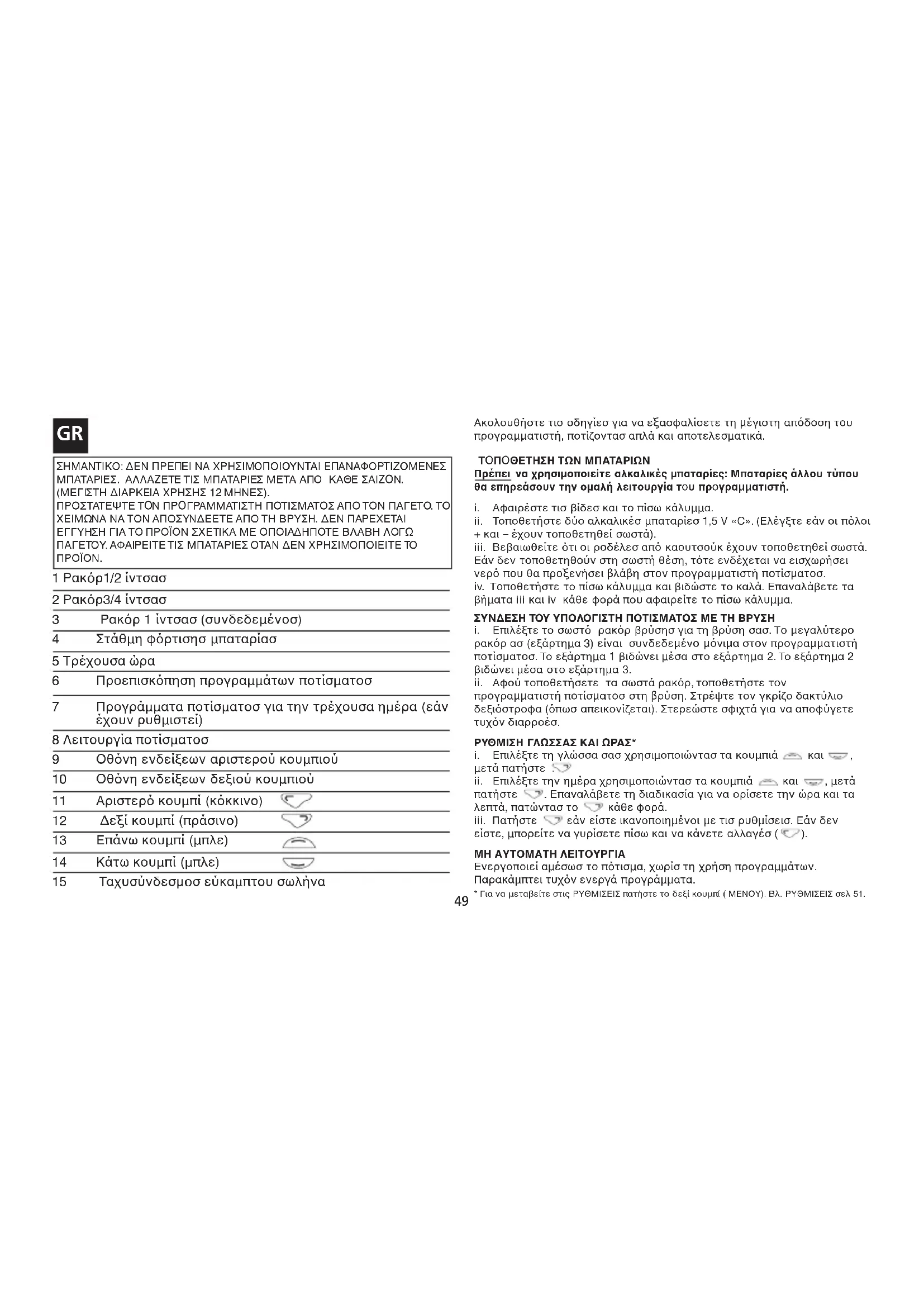 να χρησιµοποιείτε αλκαλικές µπαταρίες: Μπαταρίες άλλου τύπου θα επηρεάσουν την οµαλή λειτουργία του προγραμματιστή.