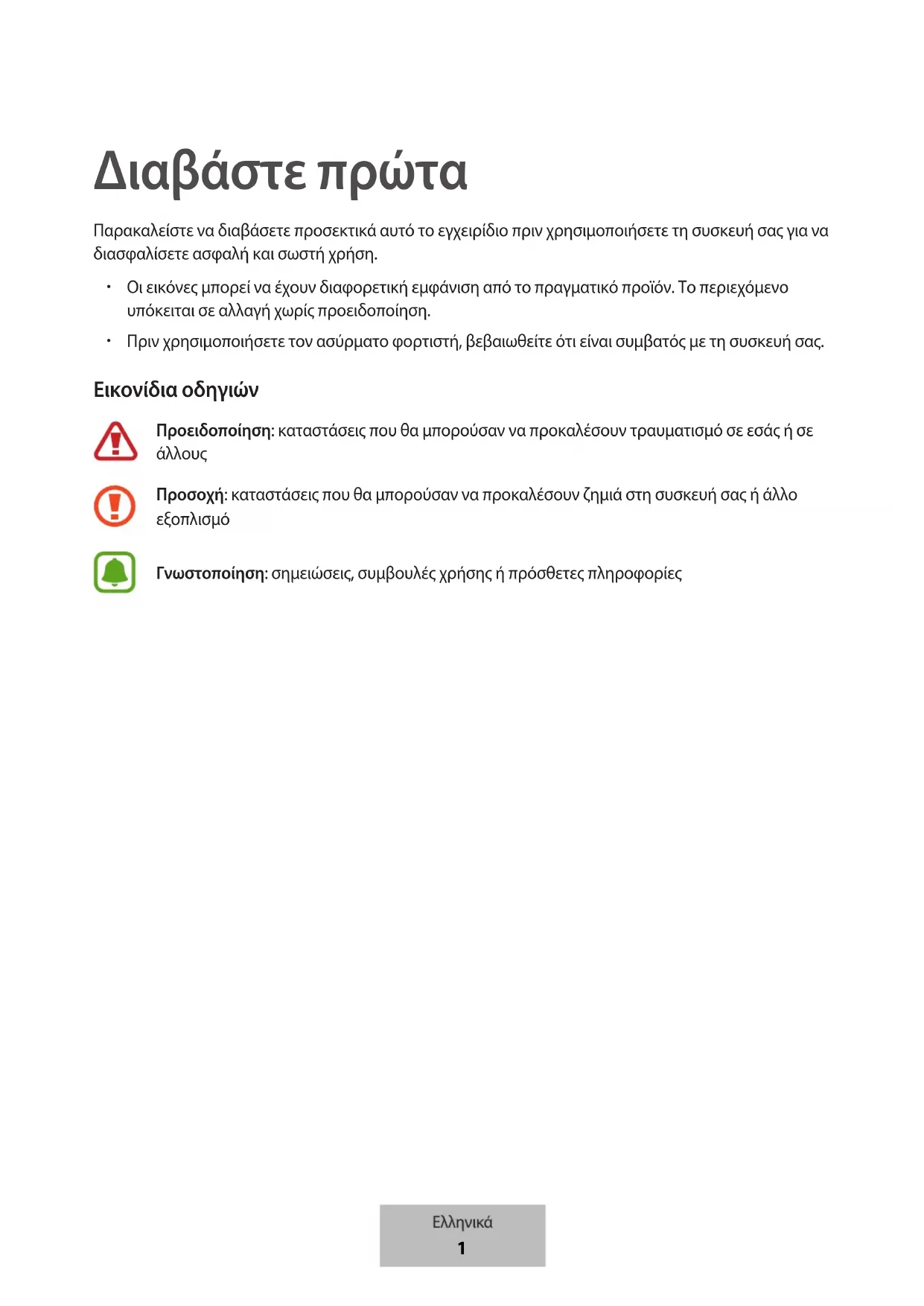 Διαβάστε πρώτα Παρακαλείστε να διαβάσετε προσεκτικά αυτό το εγχειρίδιο πριν χρησιμοποιήσετε τη συσκευή σας για να διασφαλίσετε ασφαλή και σωστή χρήση.