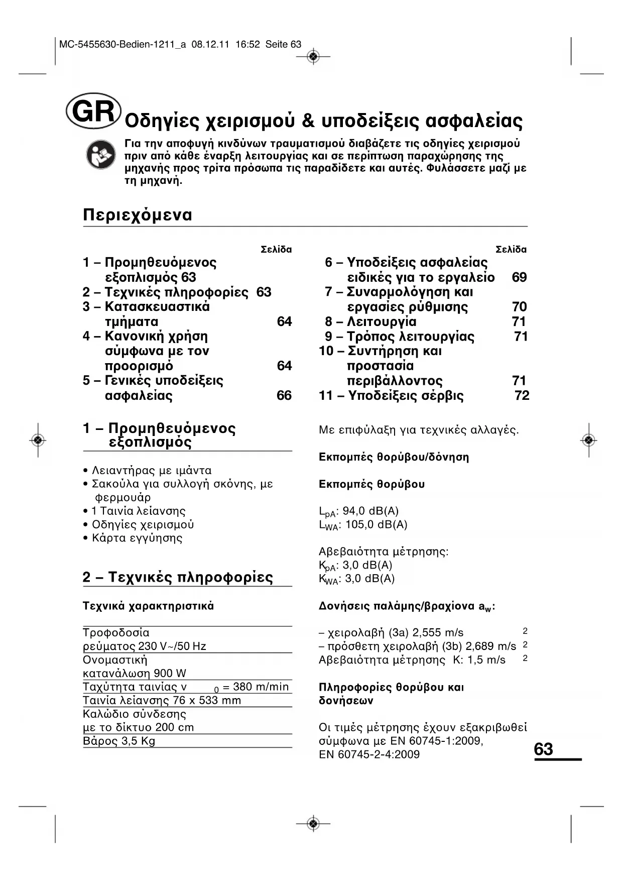 6 – Υποδείξεις ασφαλείας ειδικές για το εργαλείο 69