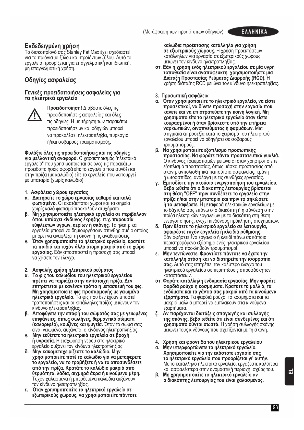 H Stanley Europe OTa auta ta TPOIOVTA TTou TEPIYpaoVTai Ota "TEXVIKA xaapKTnpiOTIKA" OUMOpovTai e: 2006/42/EK, EN 60745-1, EN 60745-2-5