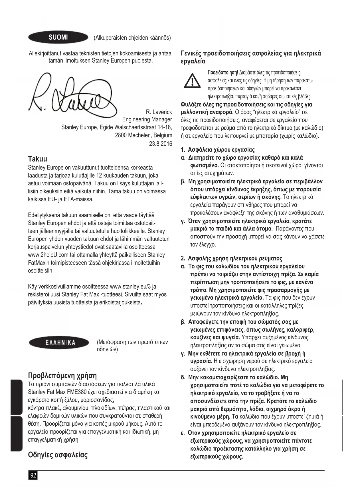 Ia va uTOBalaTe aGwON BAeTI nG eyyunong, naGwON Ta PPETIEva Eivai OuMPWvN ME Touc Opouc KAI TPOUToEeIg TNS Stanley Europe kai 0A xpeiaotei va uTOBaaleT aTOBdEIG N ayopac OTov WAnThn ae EGOUoBDOTNevo AVITPPOOWW To EIOKEuw. MTOPEITEva aTOKTHeTE touc OPOUC KAI TPOUToBSeIc TNS eyyunong 1 Etuv nC Stanley Europe kai va MaTe TIV TOTOEoiA TOI ANOIeTepou EGOUoBDOTNeVou avTTPOOwTou EIOKEuw vTo Internet oTo www.2helpU.com, n ETIKOIVWvWvTAC ME TO TOTIKO OAc ypapeio Stanley FatMax OTn DIEUUVOn TIO UTOBDEIKVUETA OTo TAPOV EYxEpIDIO.
